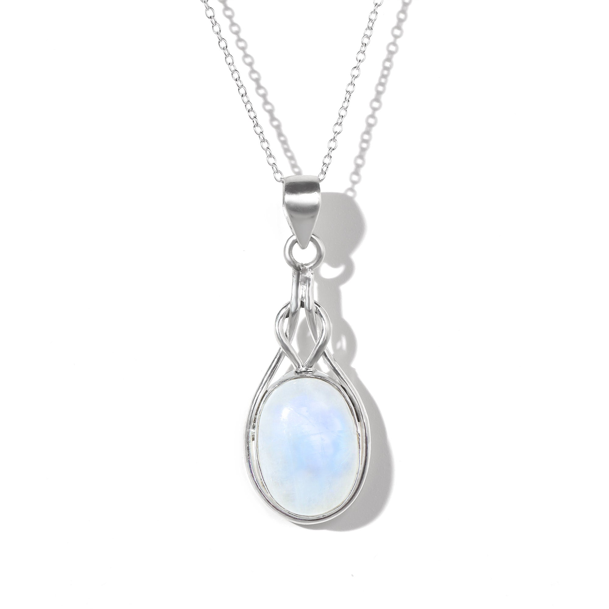 Rainbow Moonstone Solid 925 Sterling Silver Chain Knot Pendant Jewelry - YoTreasure