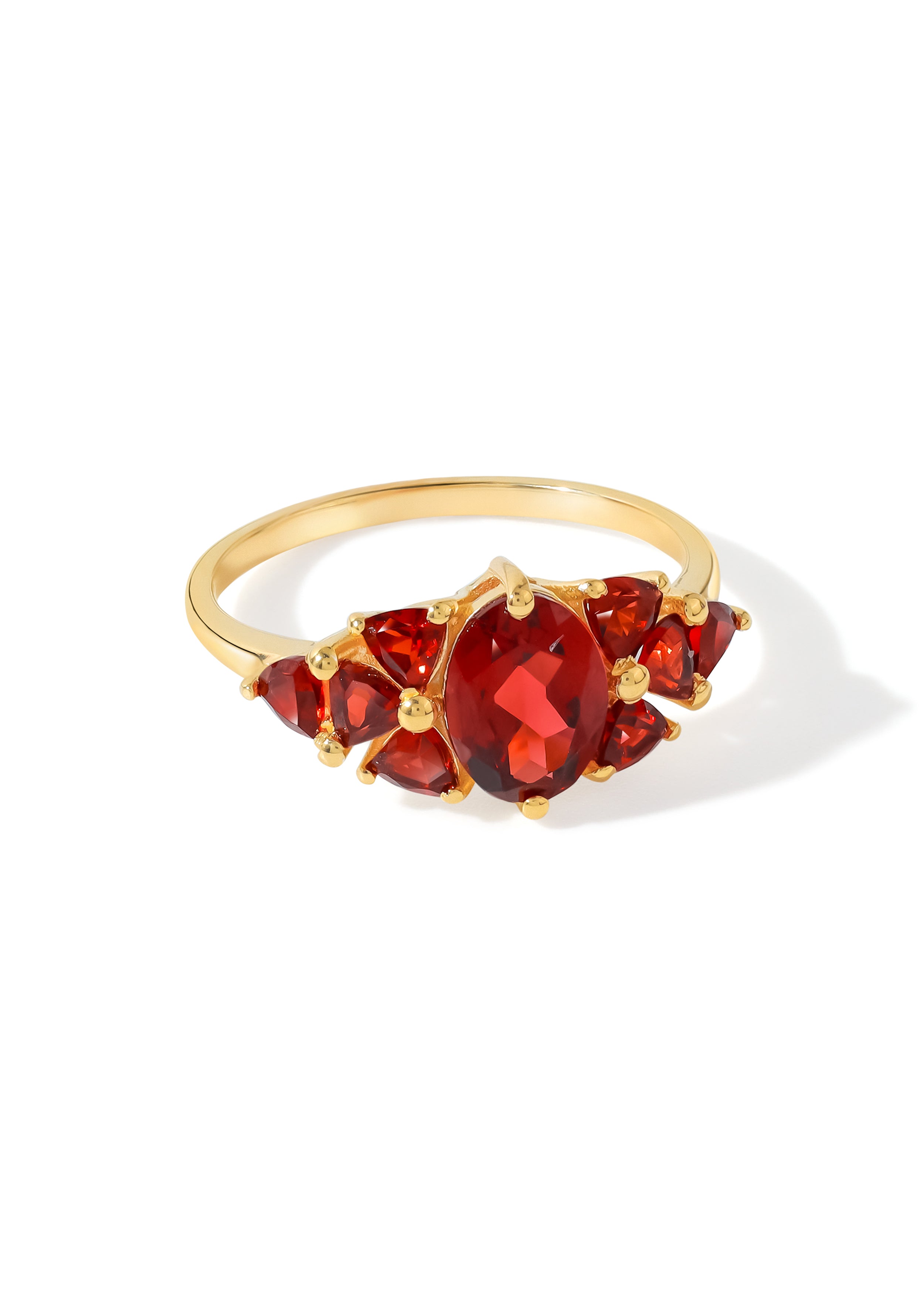 14K Gold Plated 925 Sterling Silver Garnet Floral Ring