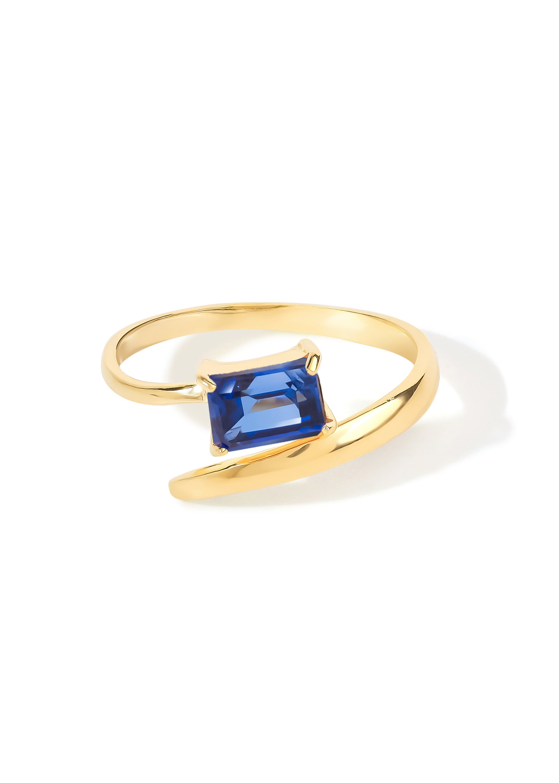 14K Gold Plated Bypass Ring Lab Created Sapphire Rings for Women