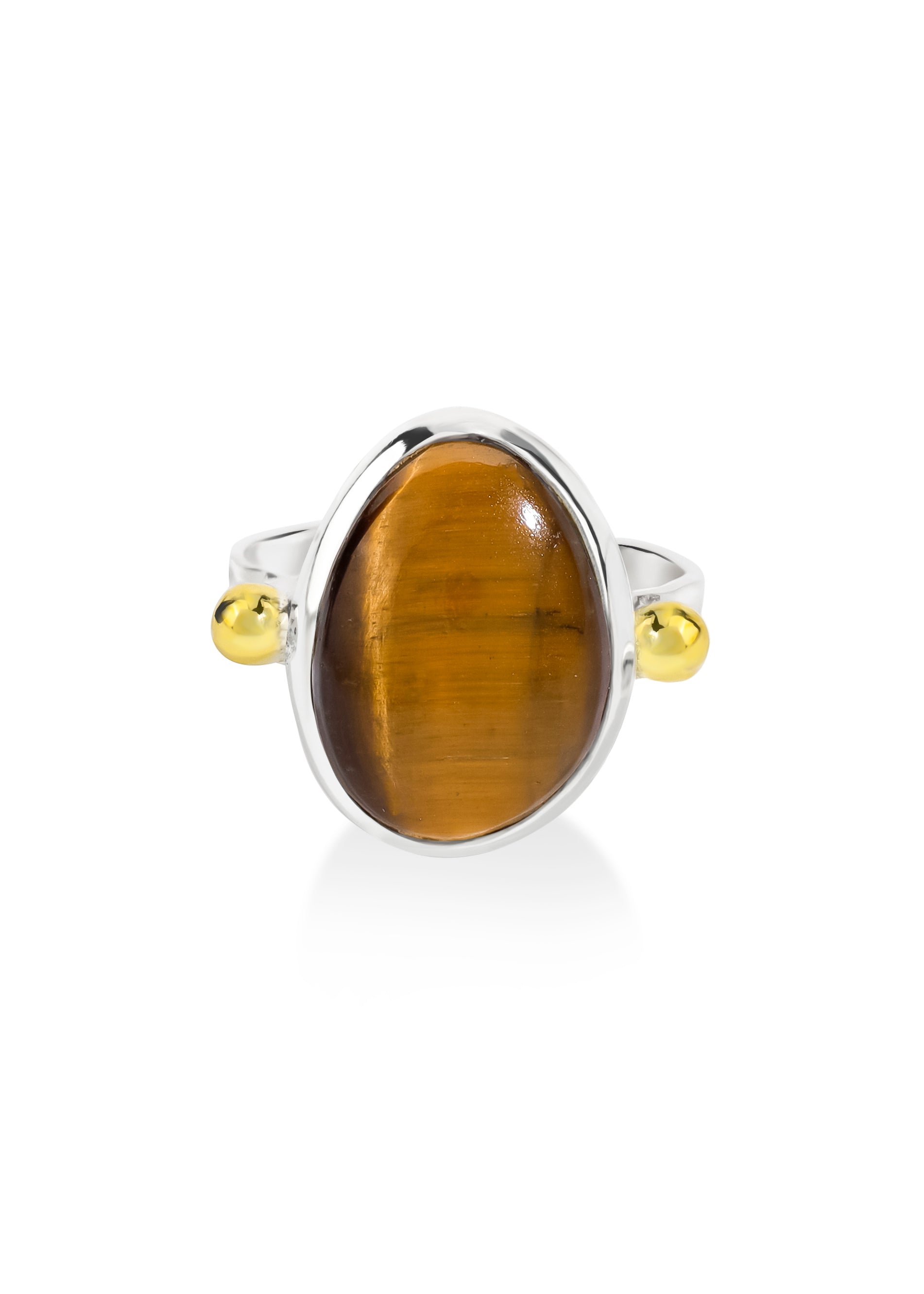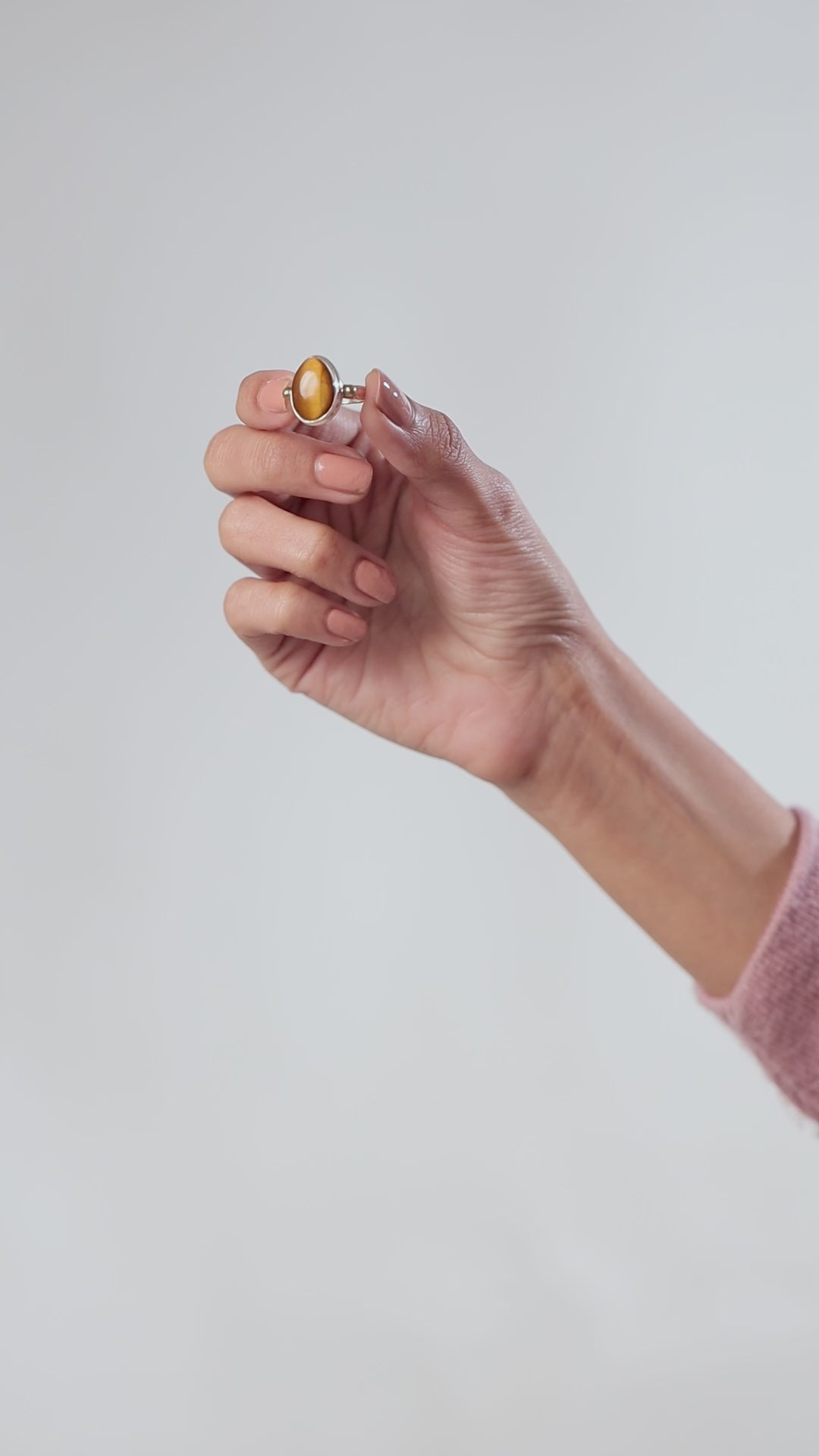 • Features a natural oval Tiger’s Eye with warm golden-brown hues