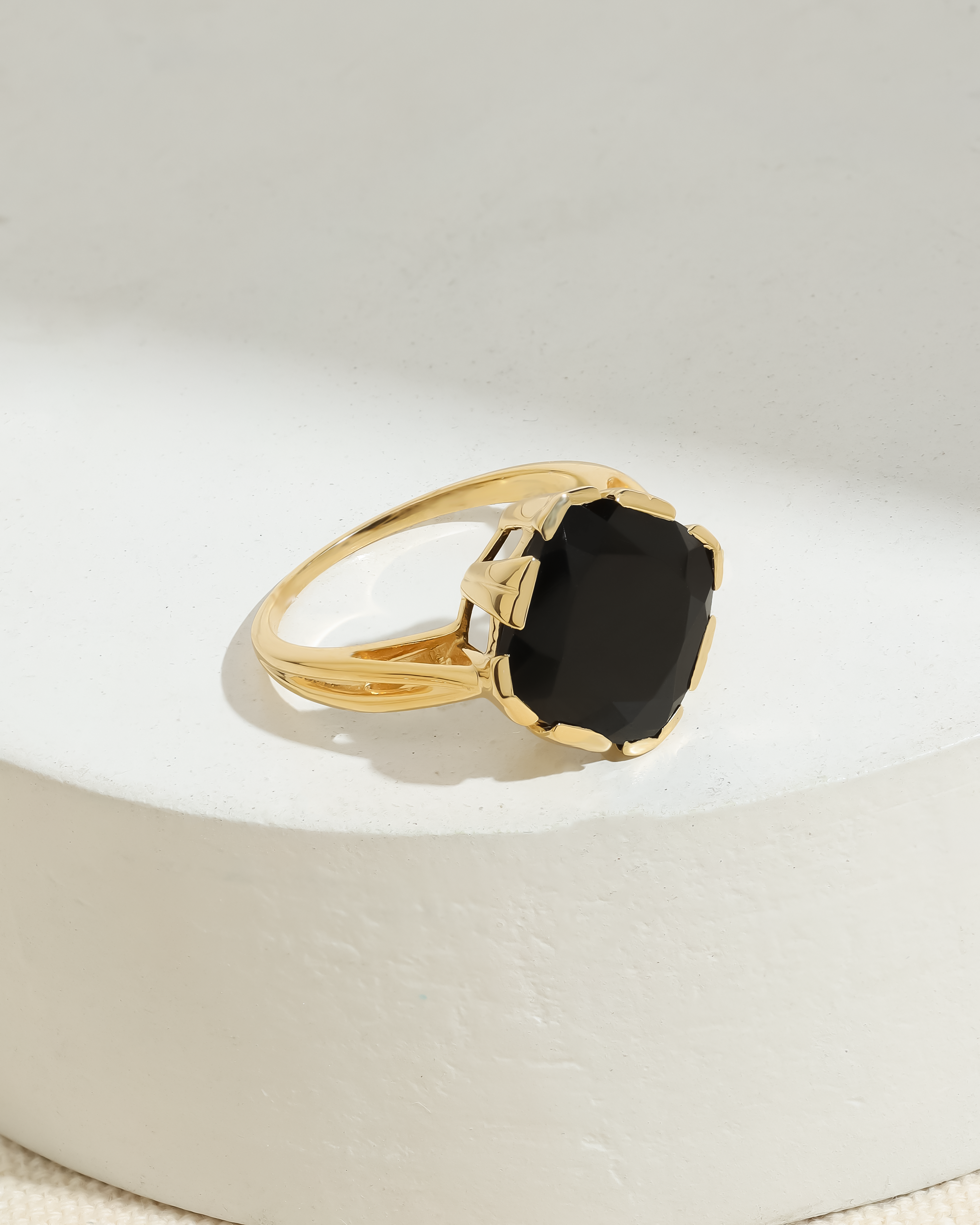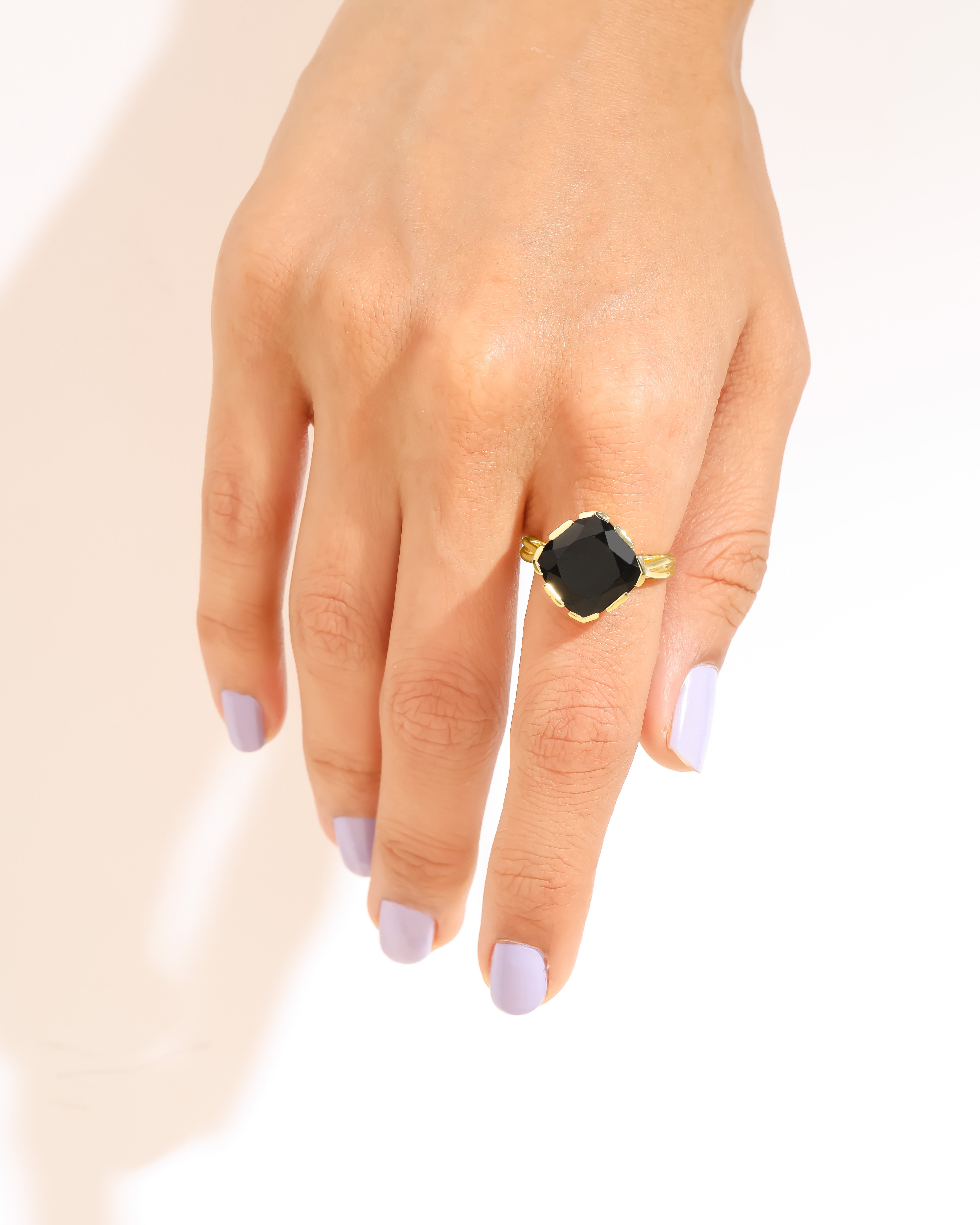 Black Onyx Ring 14k Gold Plated Over 925 Silver Jewelry