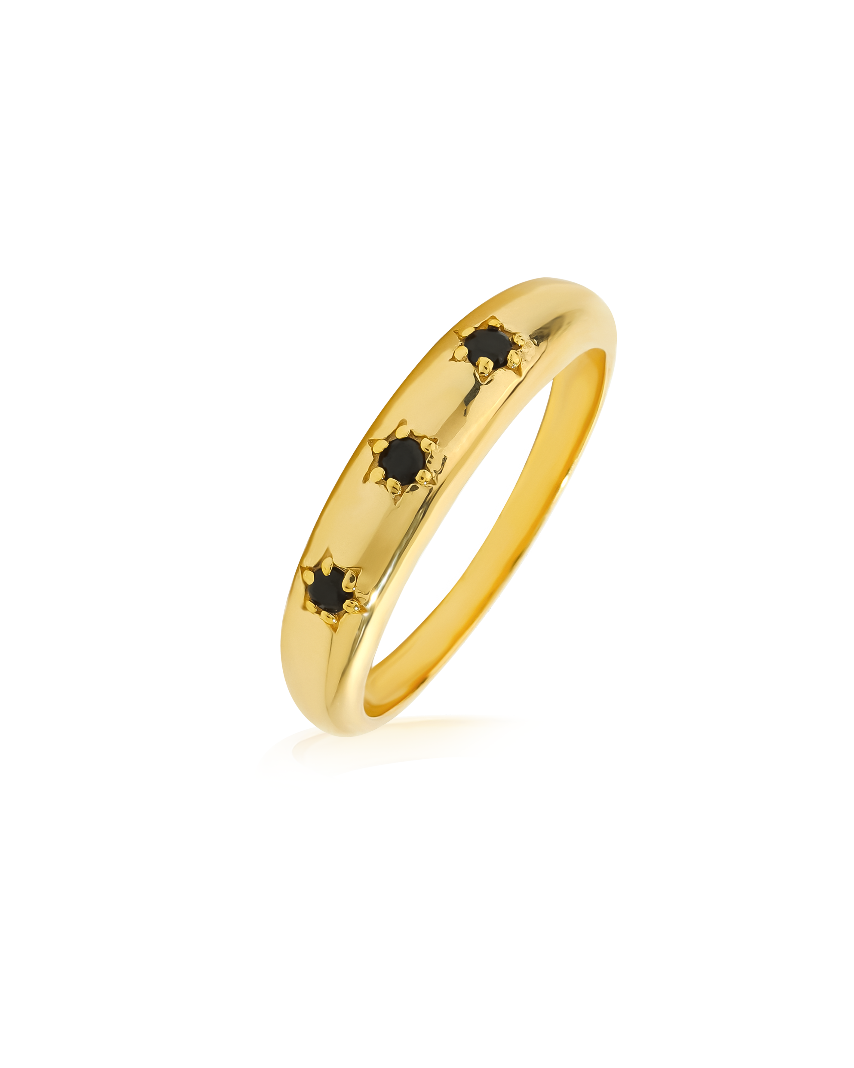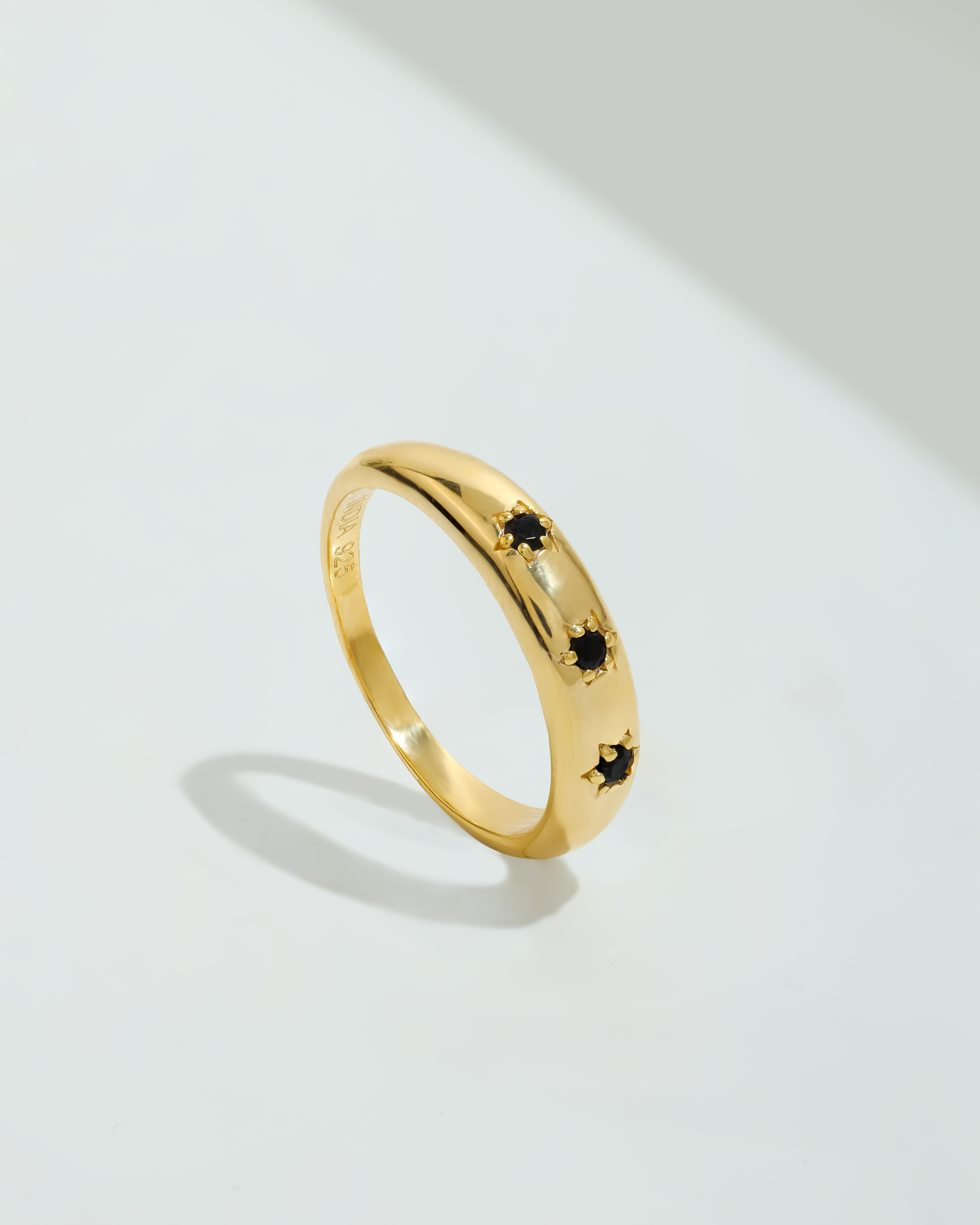 Black Spinel Band Ring 14k Gold Plated Over 925 Silver Jewelry