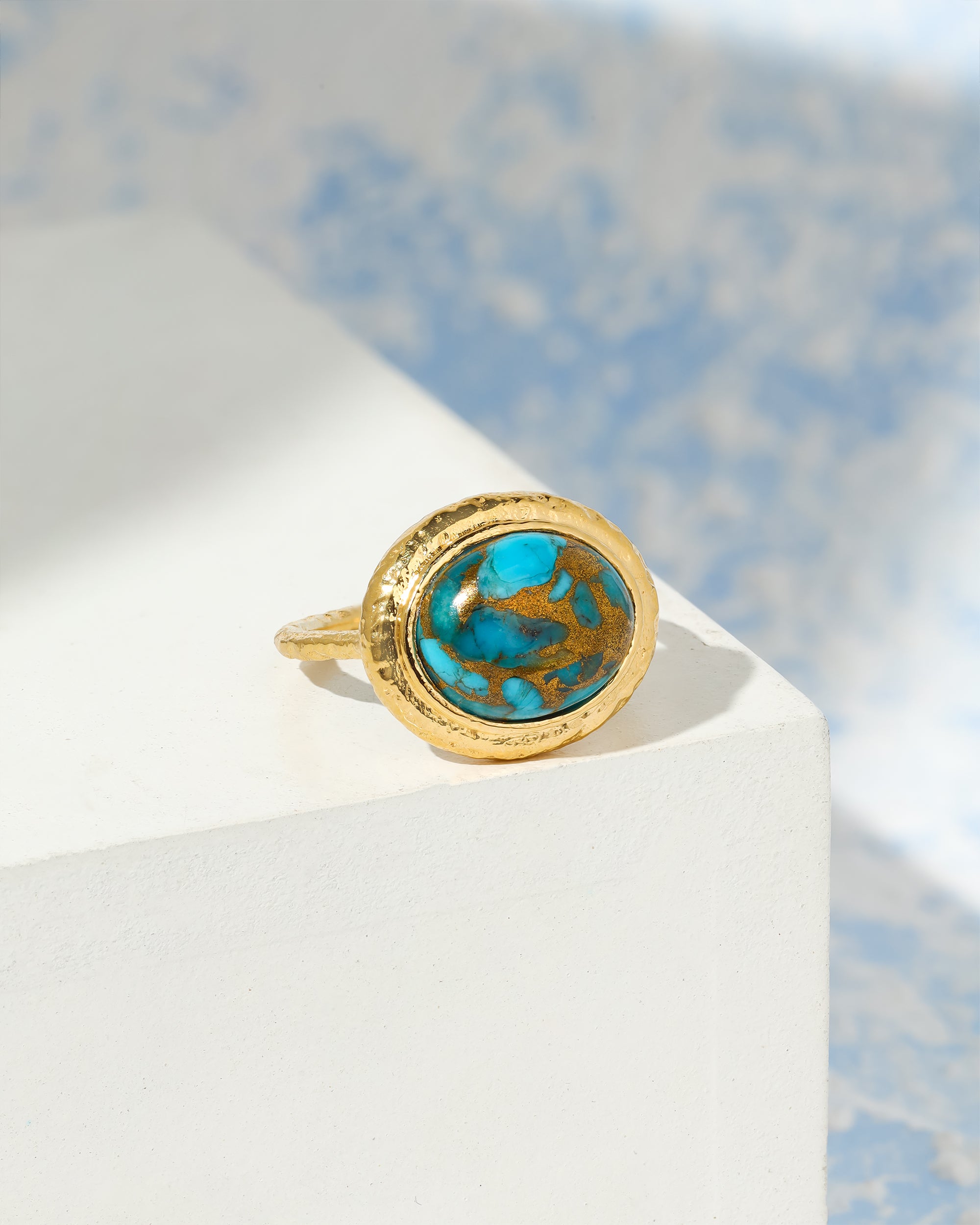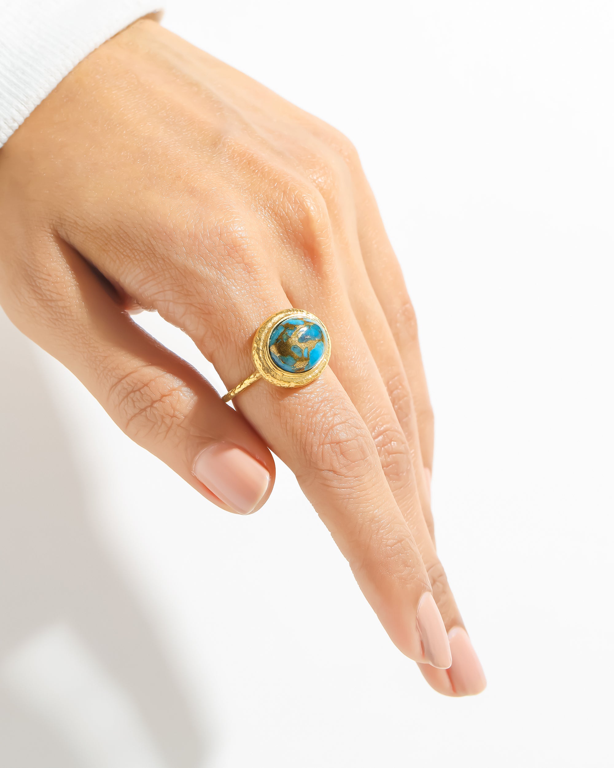 Blue Copper Turquoise Ring Solid 14K Gold Over 925 Sterling Silver Contemporary Jewelry