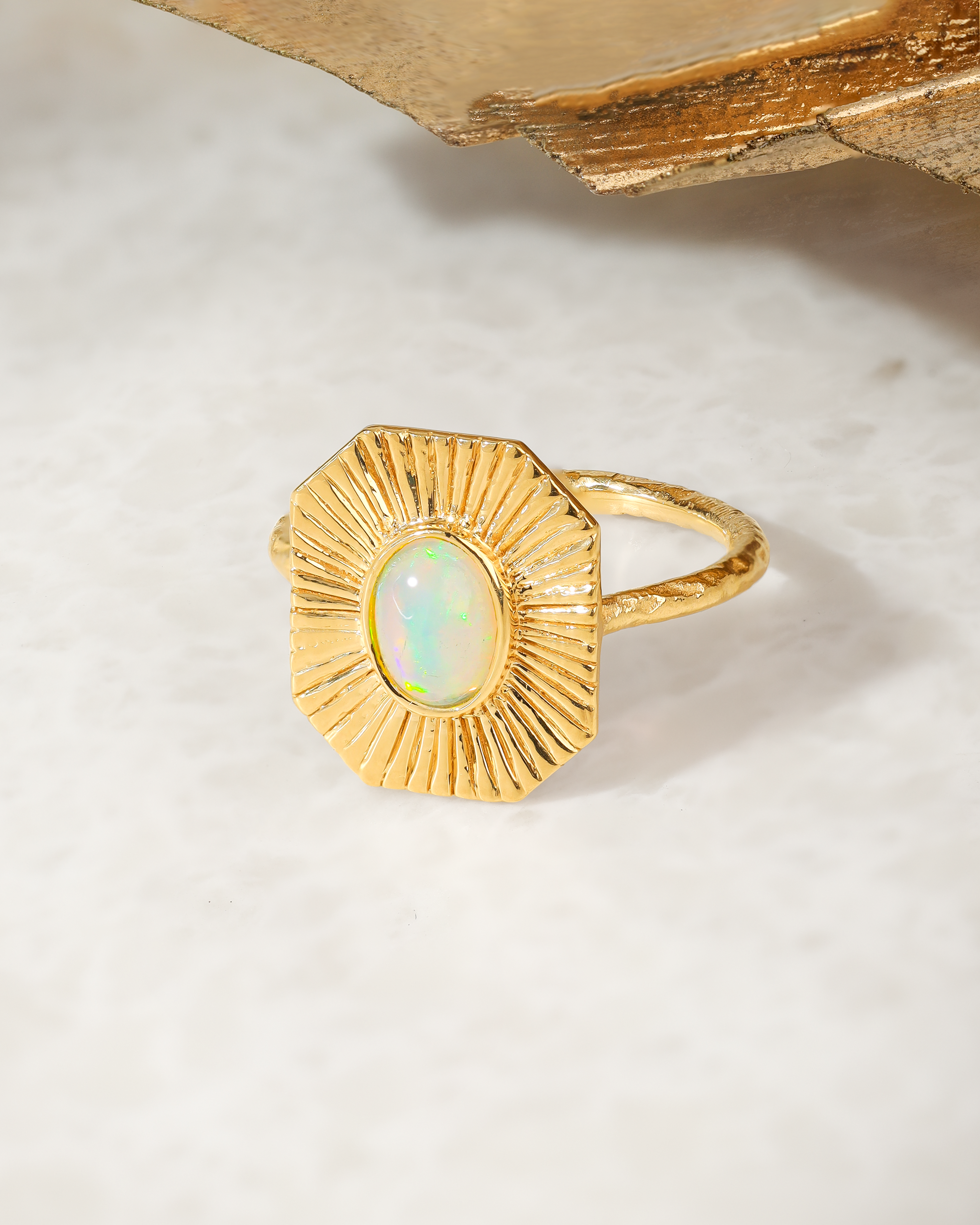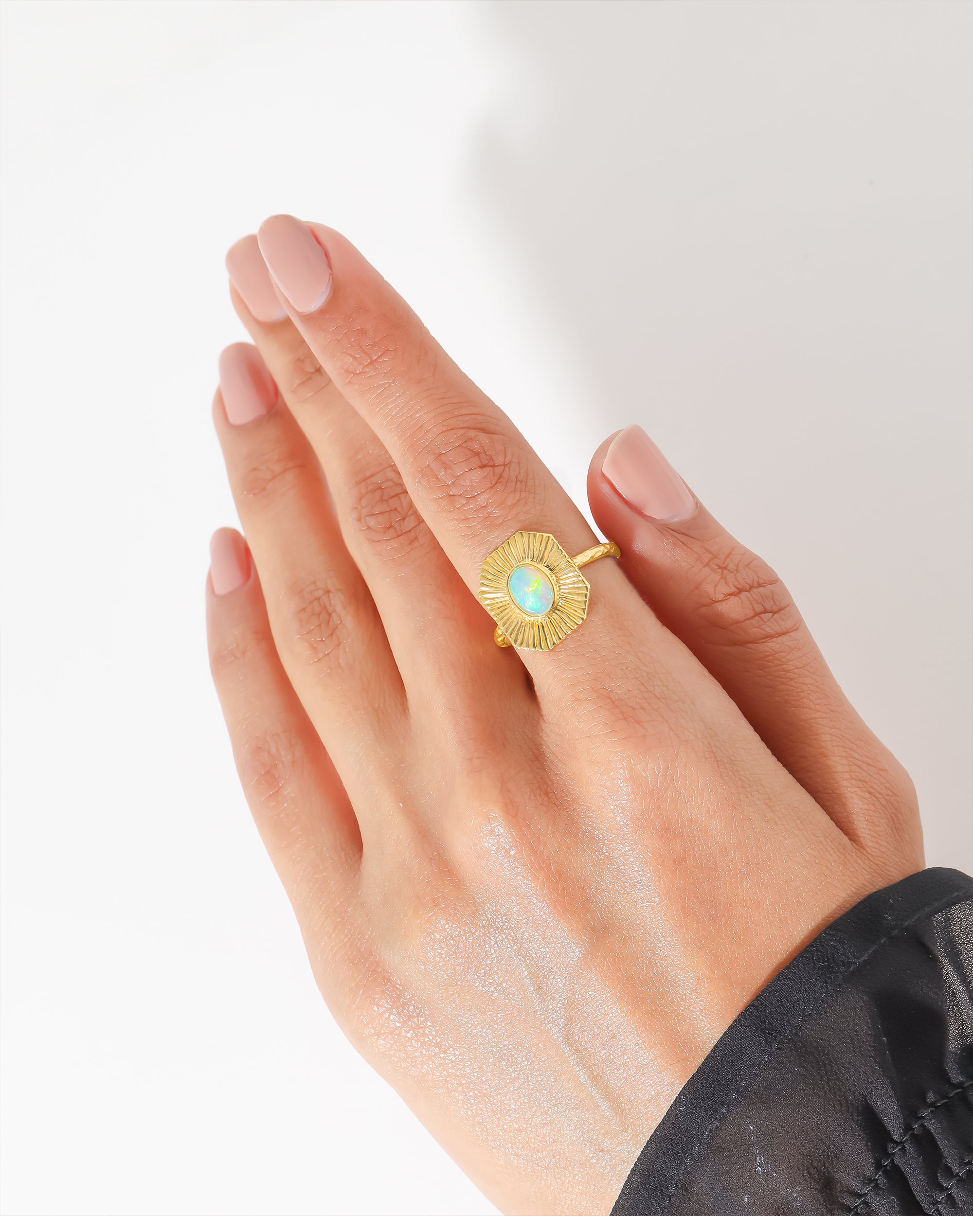 Fire Ethiopian Opal Ring Solid 14K Gold Over 925 Sterling Silver Jewelry