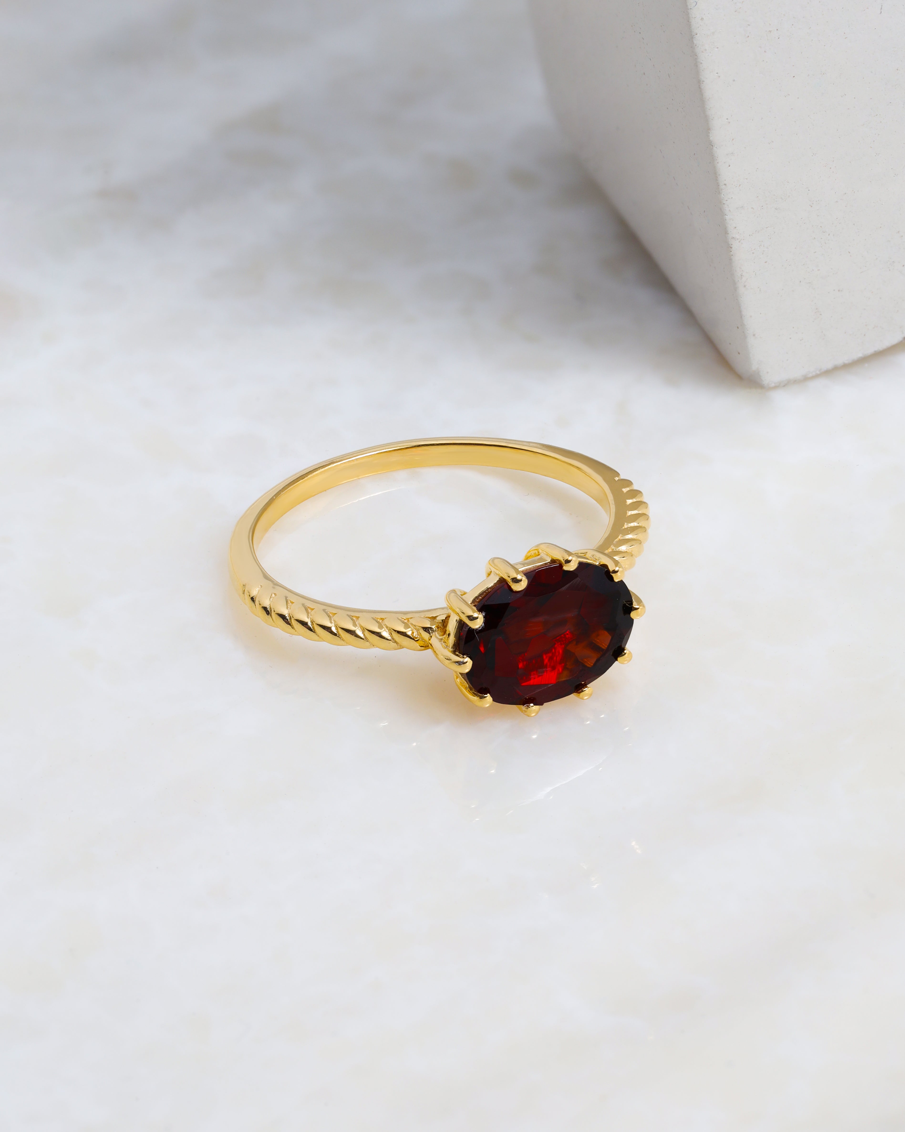 Garnet is January's birthstone and derived its name from latin word "Garanatus". Garnet's deep red color is a symbol of regeneration, said to boost energy and revitalize the wearer. Garnet is also believed to be protective stone.