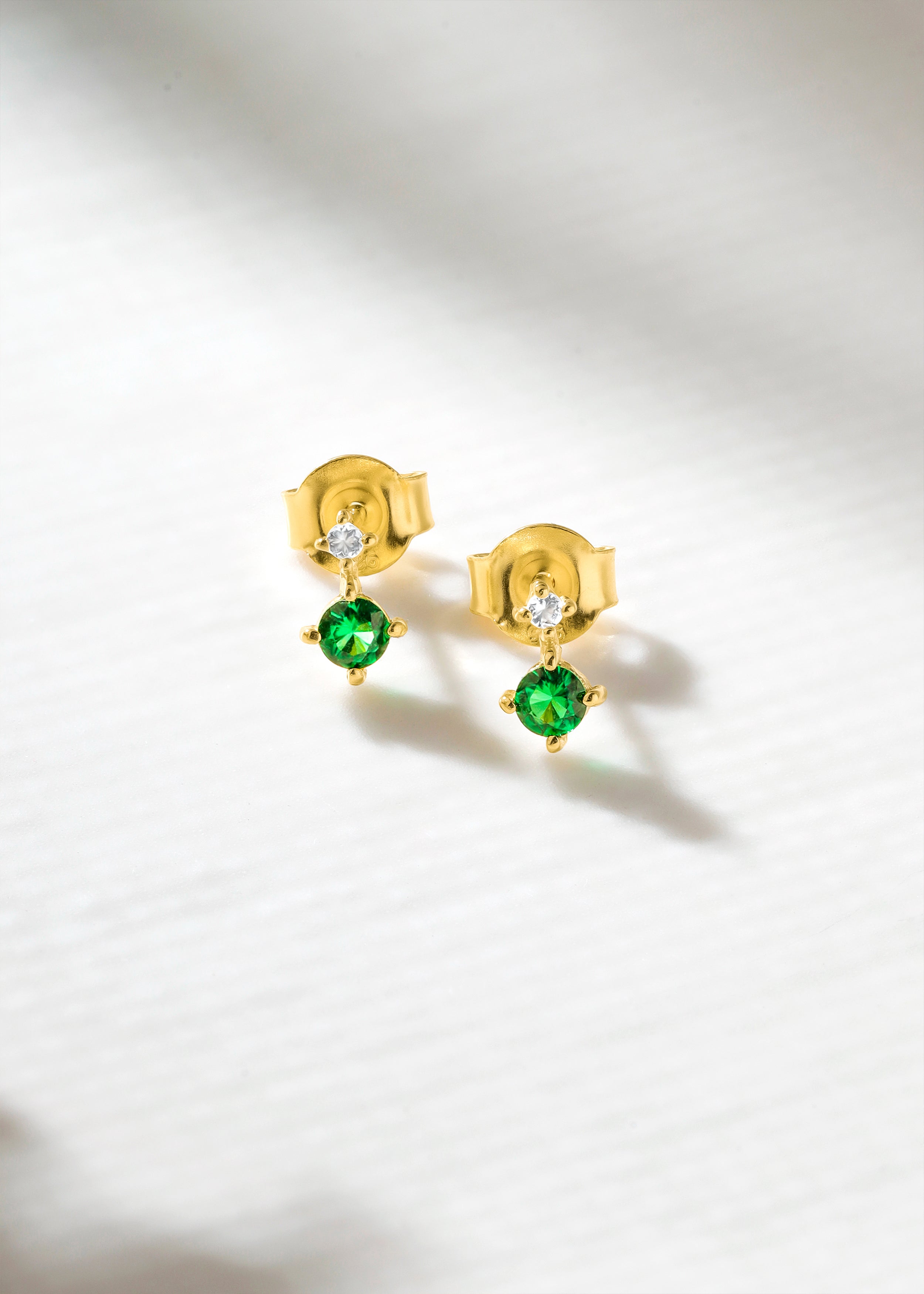 Gold Plated 925 Silver Verdant Radiance Lab Created Emerald & White Topaz Duet Stud Earrings