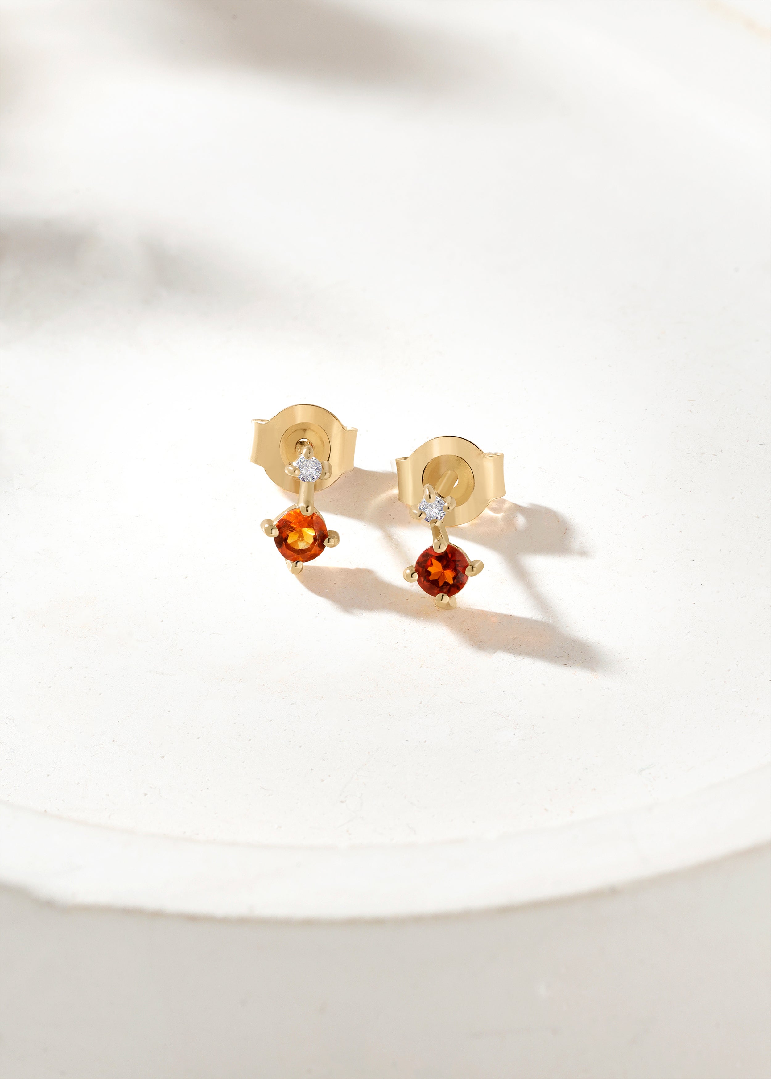 Rich and radiant, these Madeira Citrine & White Topaz Duet Stud Earrings capture the beauty of warm golden hues paired with luminous sparkle. The deep honey-orange glow of Madeira citrine is perfectly balanced by the crisp brilliance of white topaz, creating a refined and eye-catching design. These studs add warmth and elegance to everyday wear and special occasions alike.