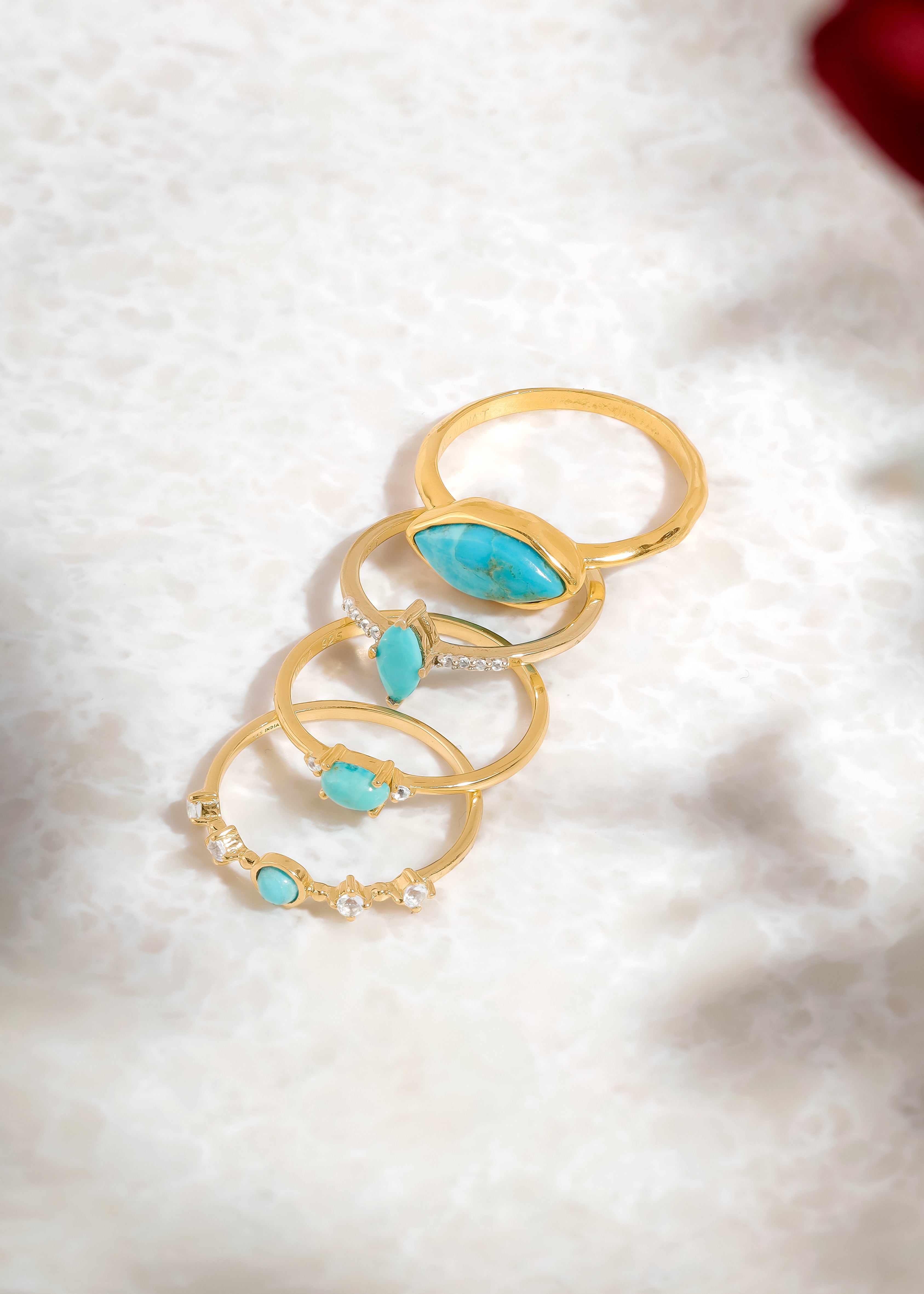 Gold Plated Over 925 Silver Desert Sky Arizona Turquoise & White Topaz Accent Ring