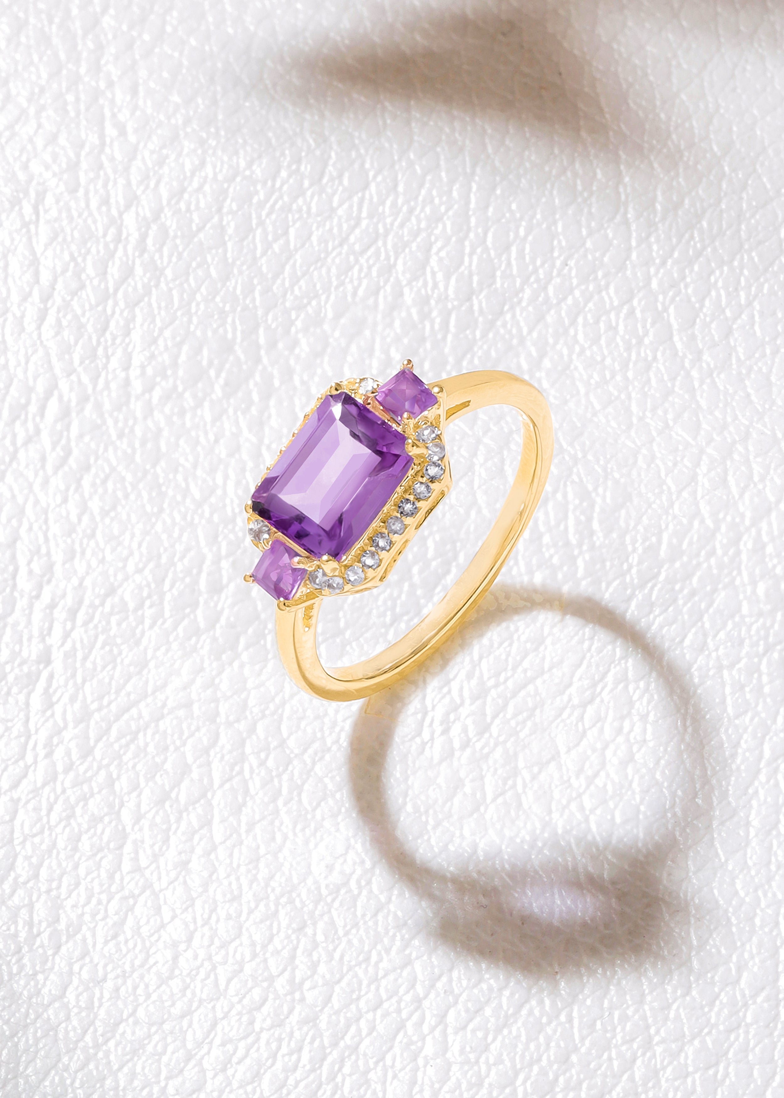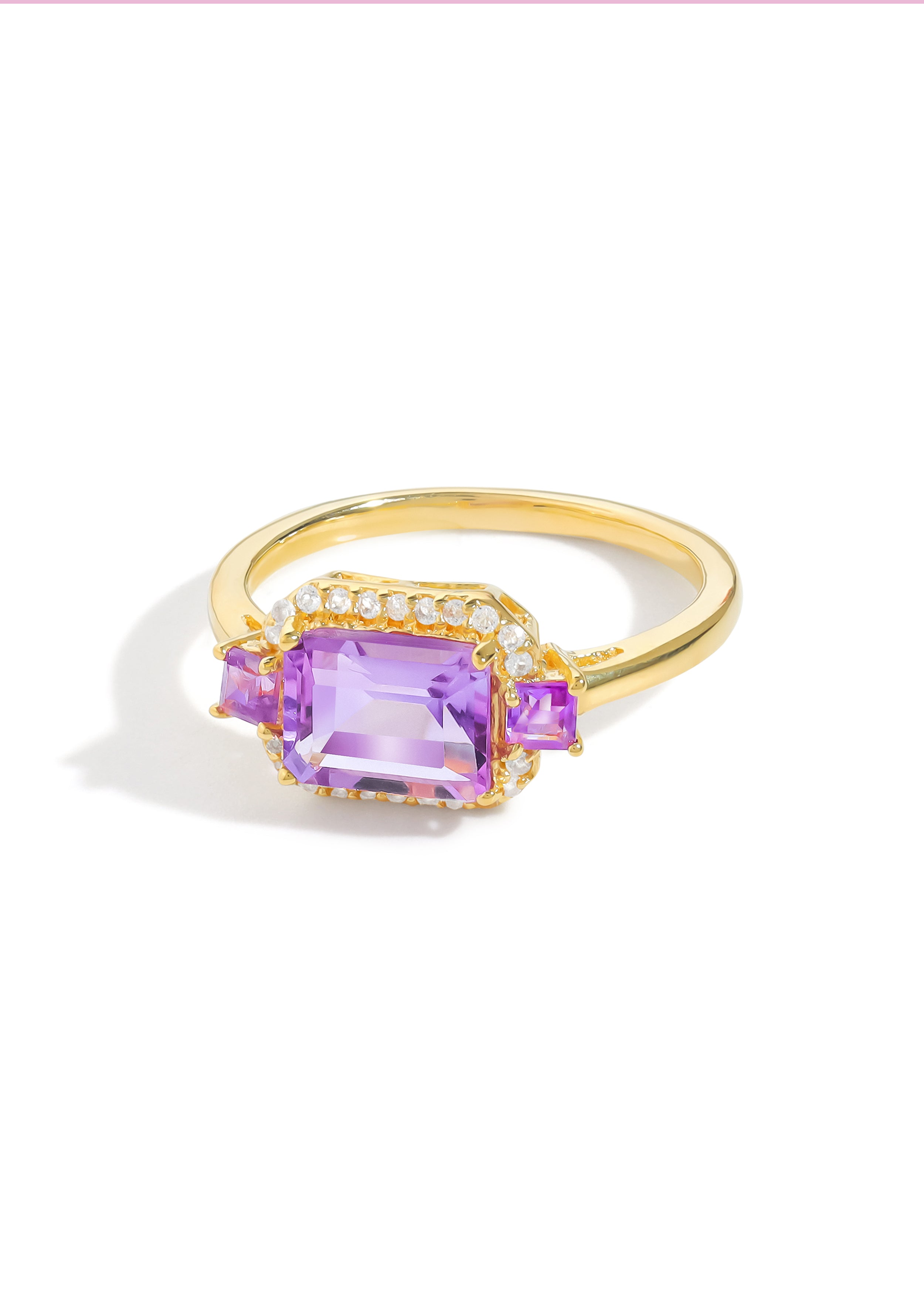 14K Gold Plated Over 925 Silver Brazilian Amethyst & White Topaz Promise Ring