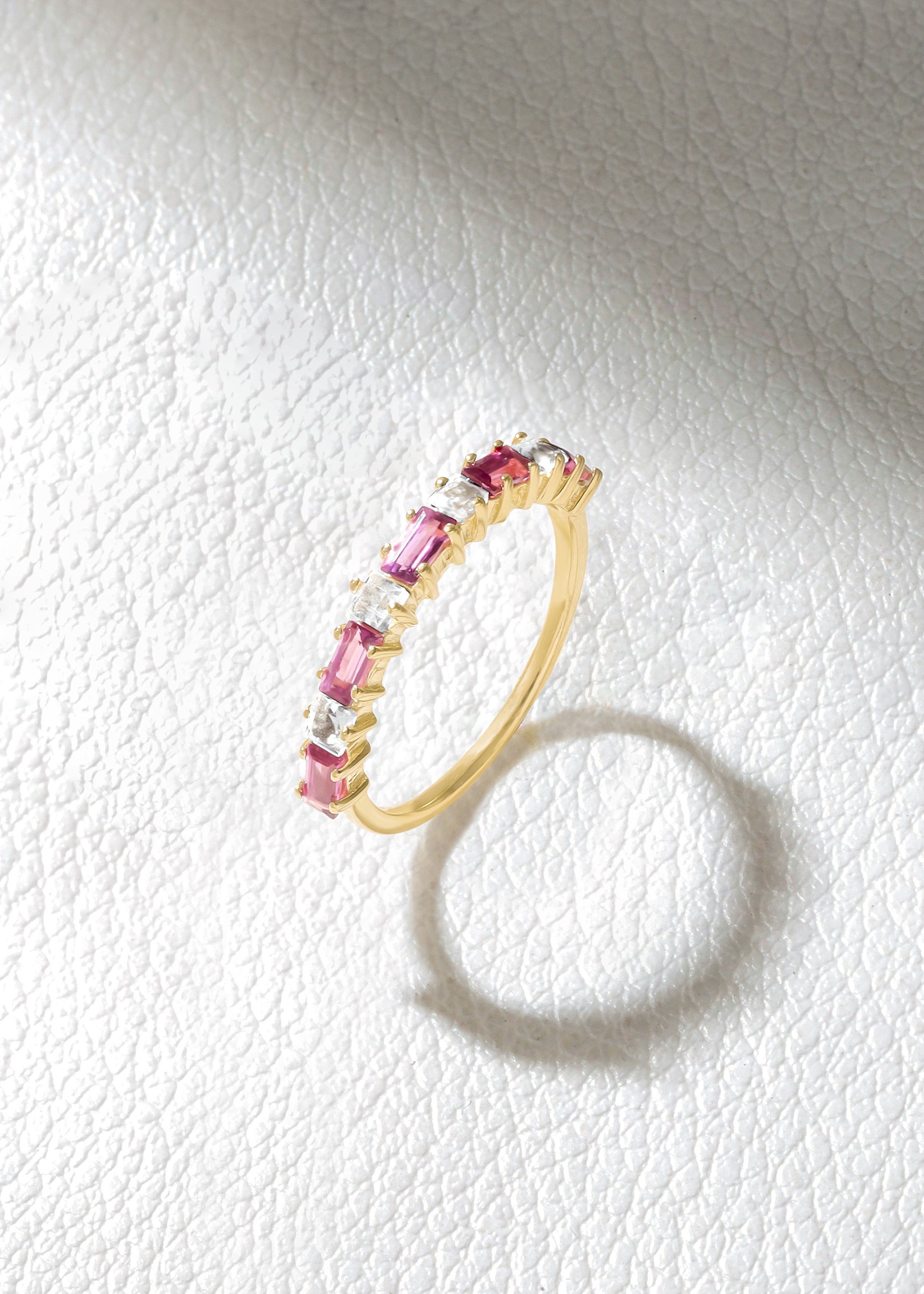 Delicate Rhodolite Garnet & White Topaz Eternity Band Ring in Gold Plated 925 Sterling Silver