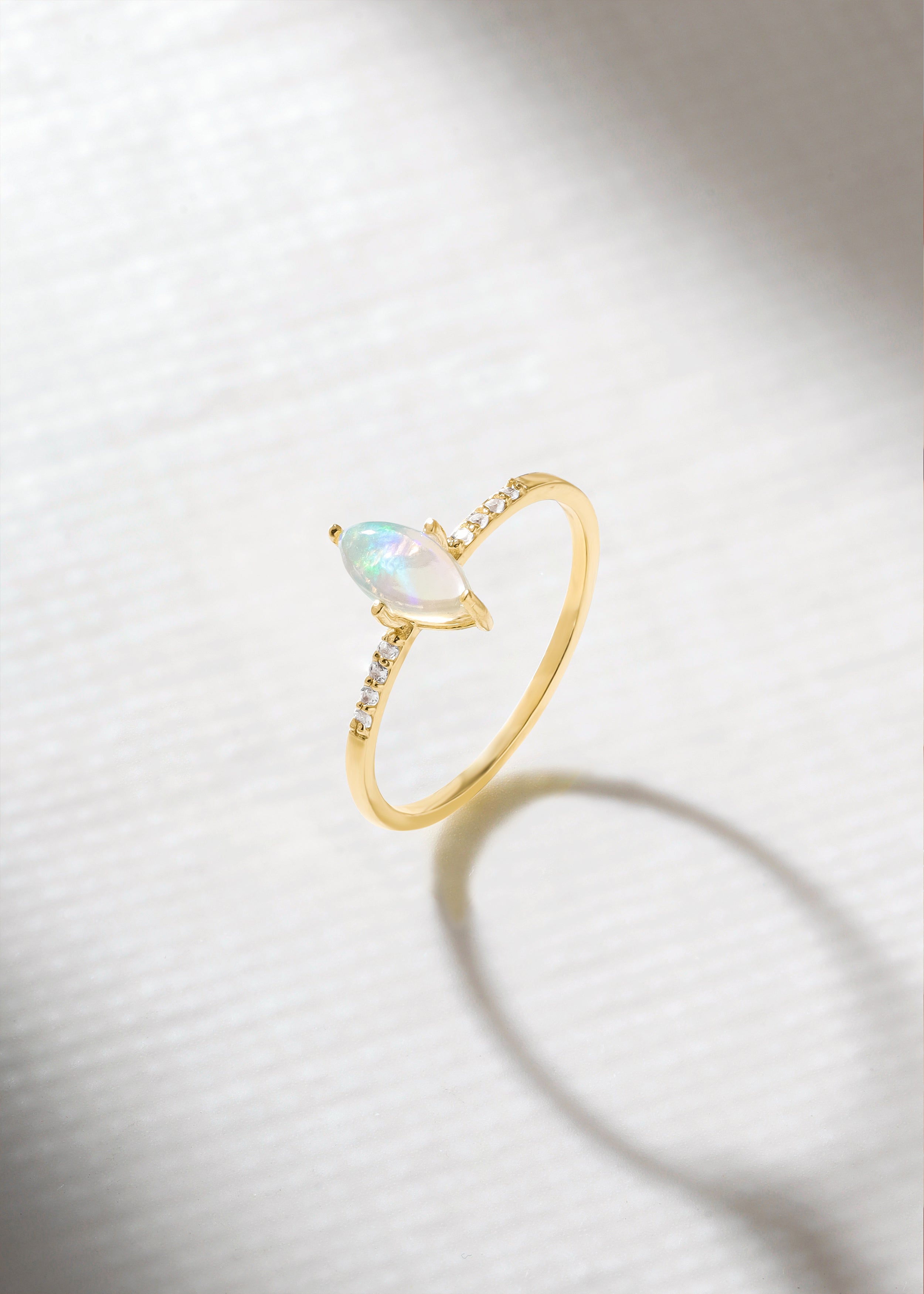• Features a marquise-cut Ethiopian opal with vivid play-of-color