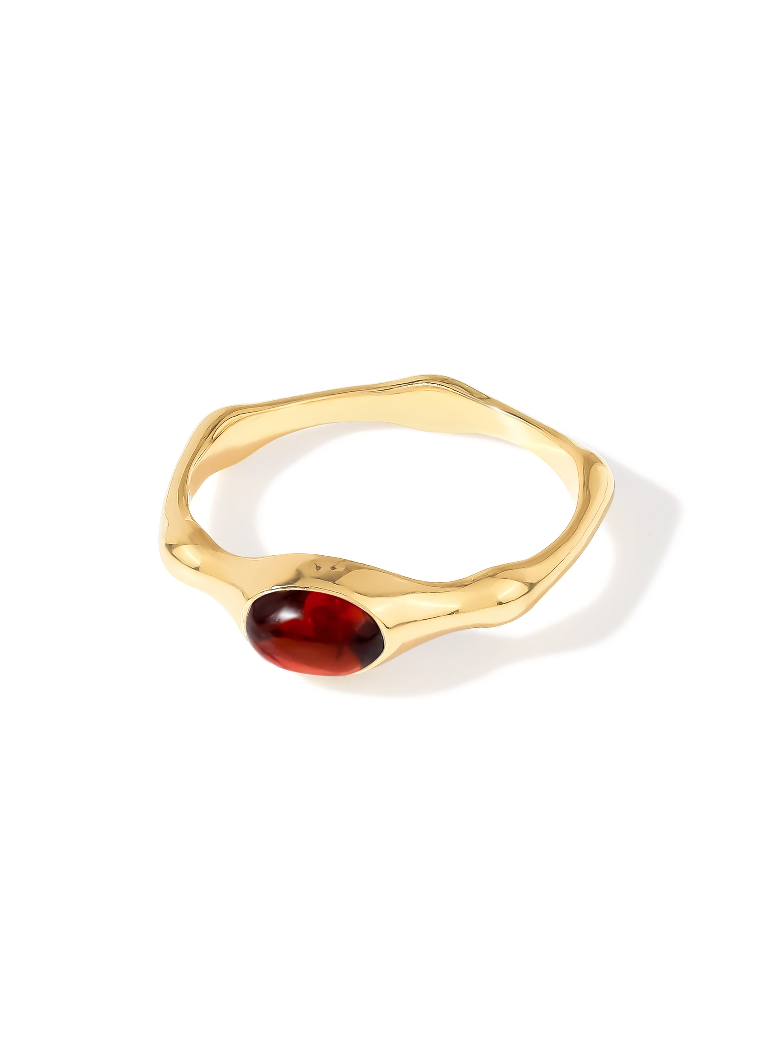14K Gold Plated Over 925 Sterling Silver Red Garnet Wavy Band Ring