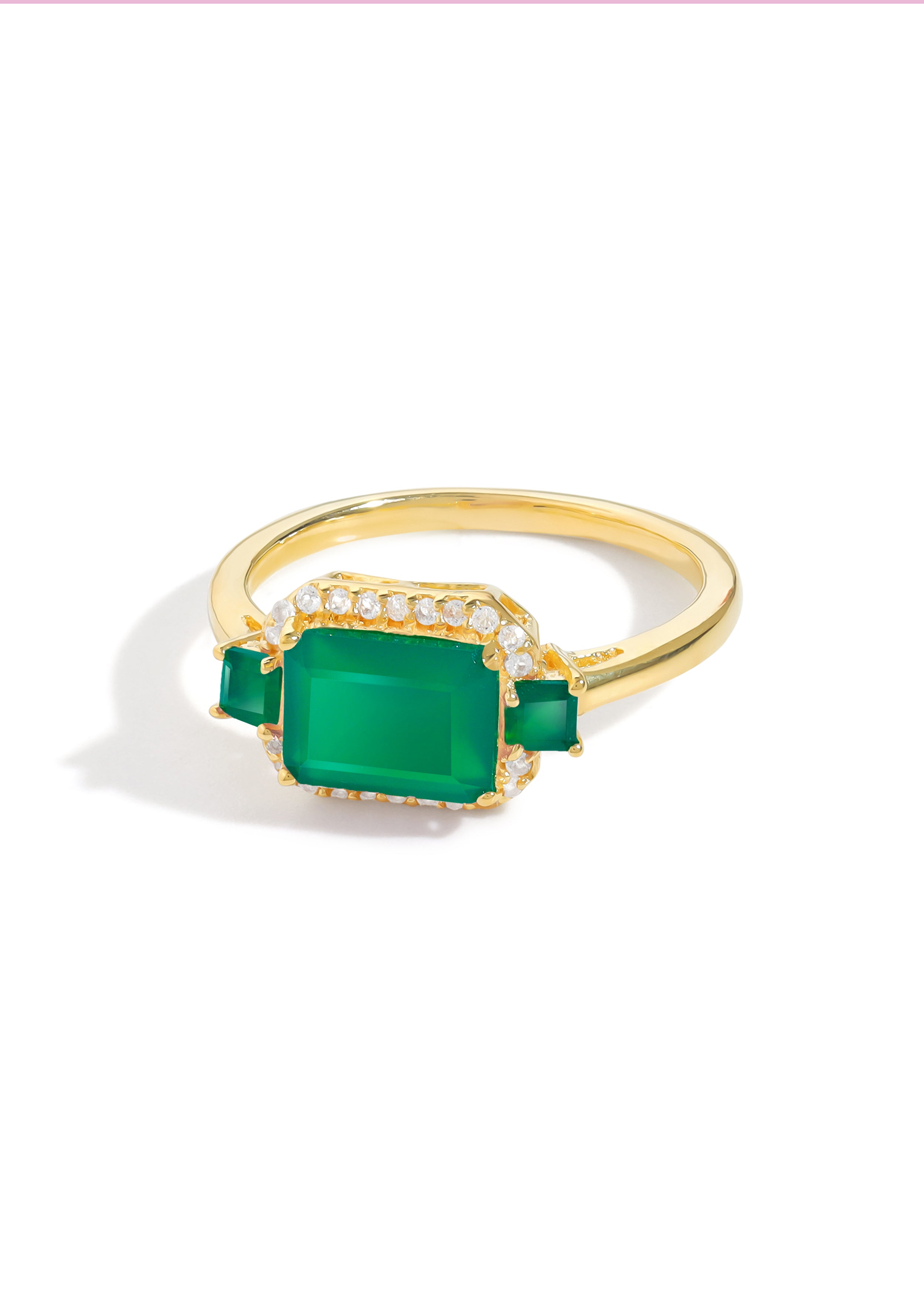 14K Gold Plated Over 925 Silver Green Onyx & White Topaz Promise Ring