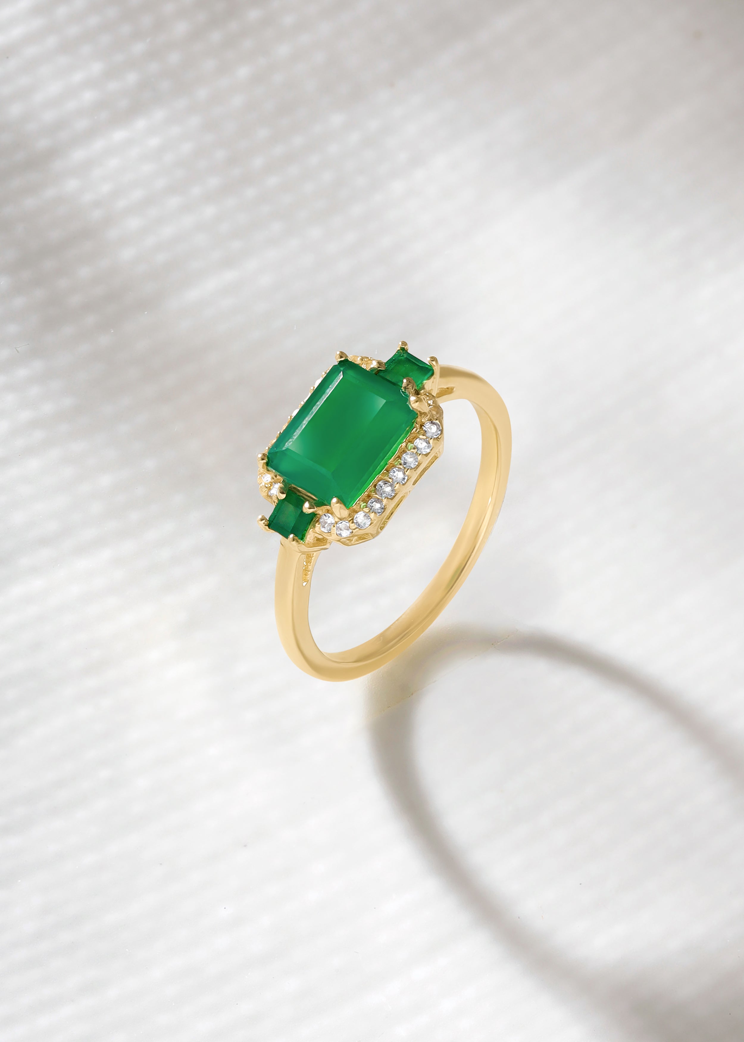 Add a touch of timeless charm to your look with this captivating ring! The deep, velvety Green Onyx at the center creates an eye-catching pop of color, beautifully highlighted by shimmering White Topaz accents. Whether you’re marking a special promise or simply elevating your everyday style, this ring brings a graceful and polished finish to any outfit.