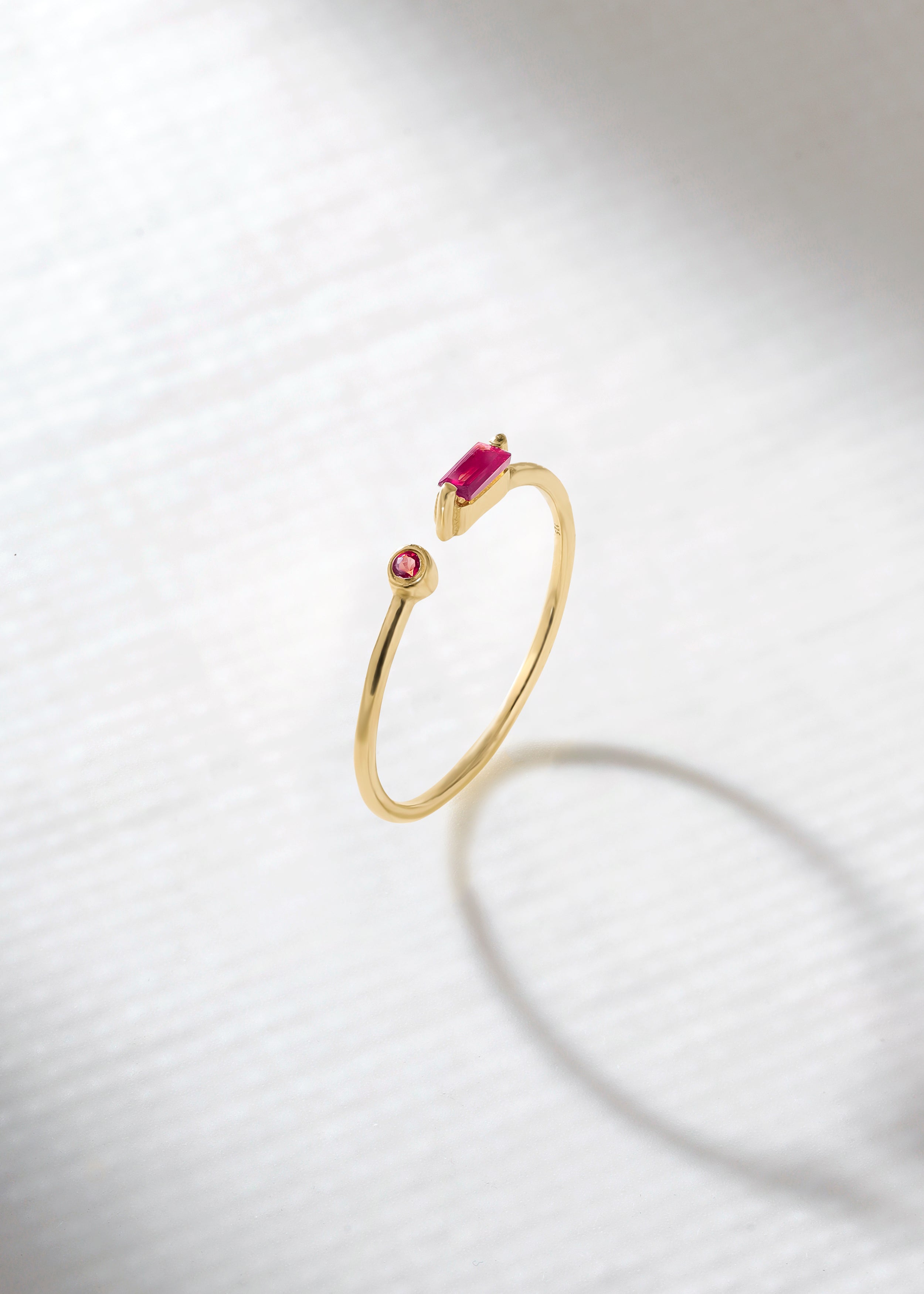 Bold yet refined, this Lab Created Ruby Open Band Ring showcases a vivid red ruby in a sleek open-band setting. The minimalist design highlights the gemstone’s rich color while offering a contemporary, airy silhouette. Perfect for everyday elegance or statement stacking, this ring adds a touch of passion and sophistication to any jewelry collection.