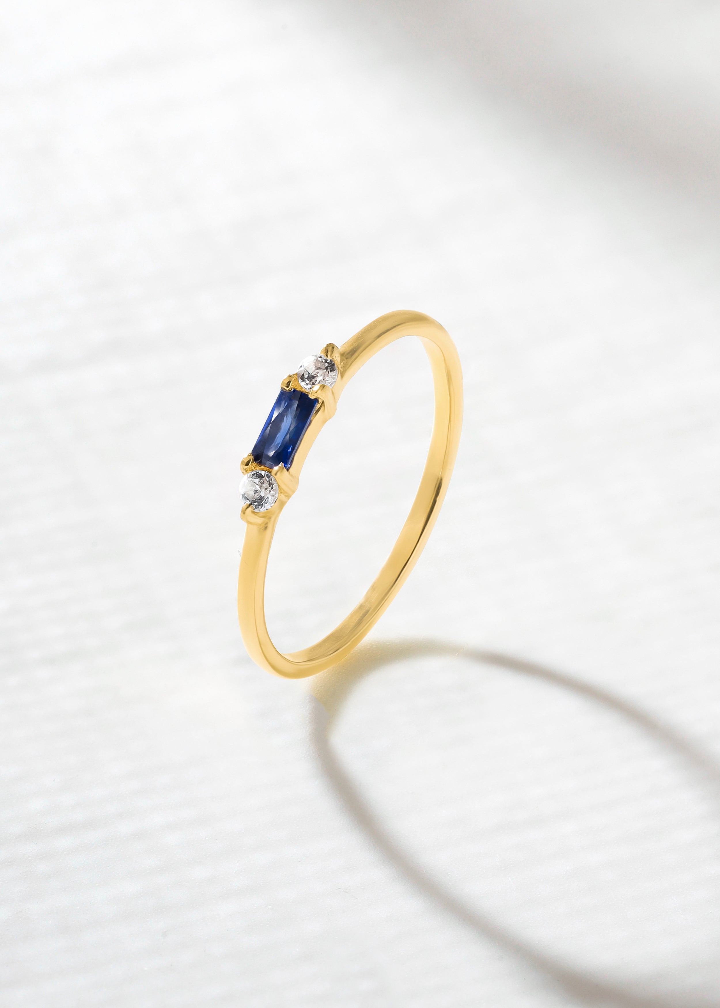 Enhance your style with the timeless elegance of this YoTreasure lab-created sapphire ring. It features a stunning marquise-cut lab-created sapphire, accented by two sparkling white topaz stones. The delicate band shines beautifully on its own or when stacked with your favorite rings. Lightweight and stylish, it is perfect for everyday wear or special occasions. This ring makes a thoughtful gift for birthdays, anniversaries, or other milestones.