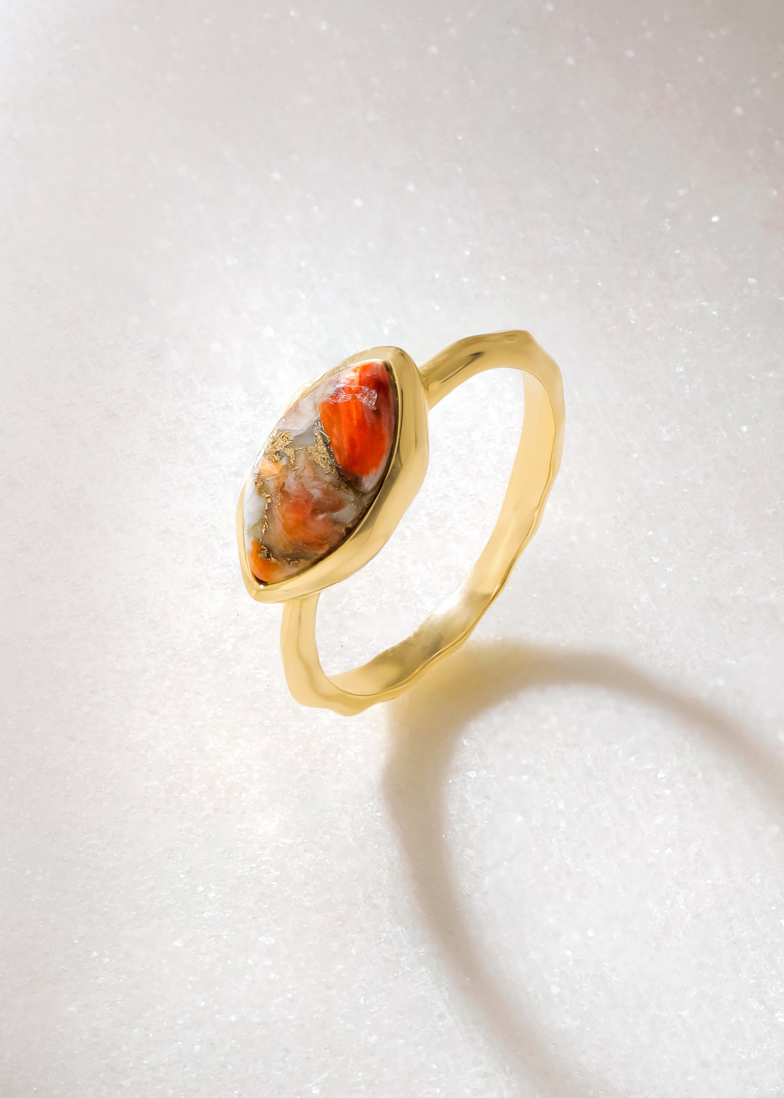 14K Gold Plated 925 Silver Marquise Oyster Copper Turquoise Wave Band Ring