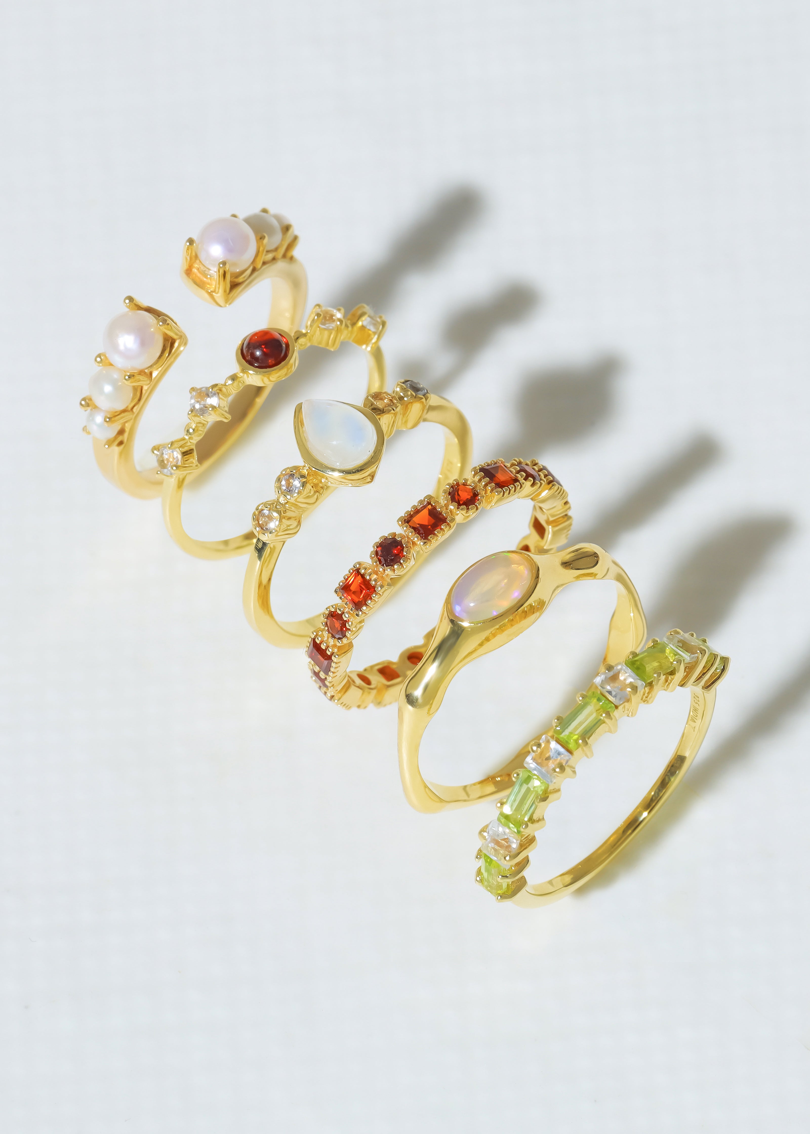 Elevate your style with this chic garnet band ring! Designed with round and square garnets, it blends modern geometry with timeless sparkle. The warm gold-plated finish adds a luxurious glow, making this piece perfect for special occasions or everyday elegance.