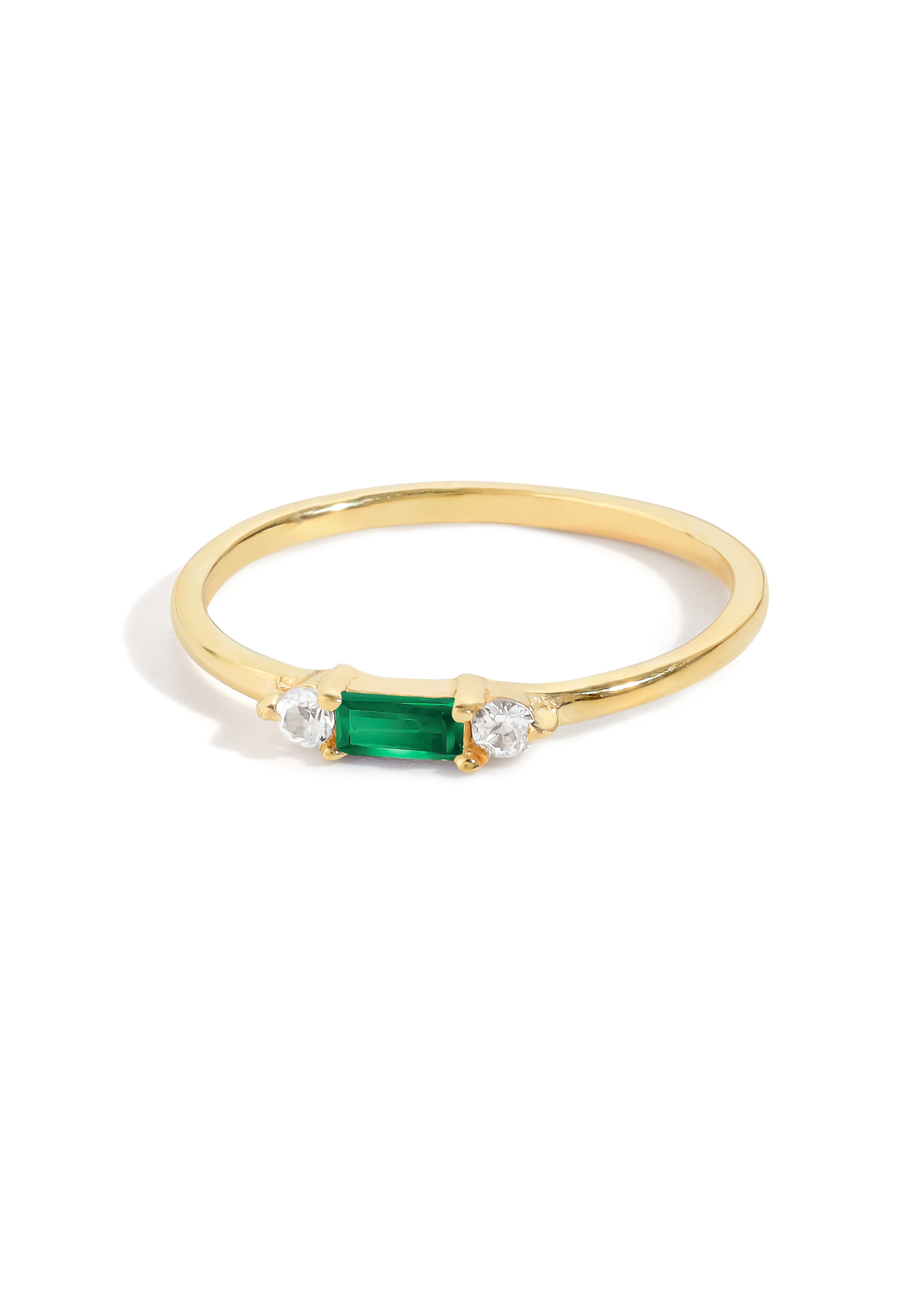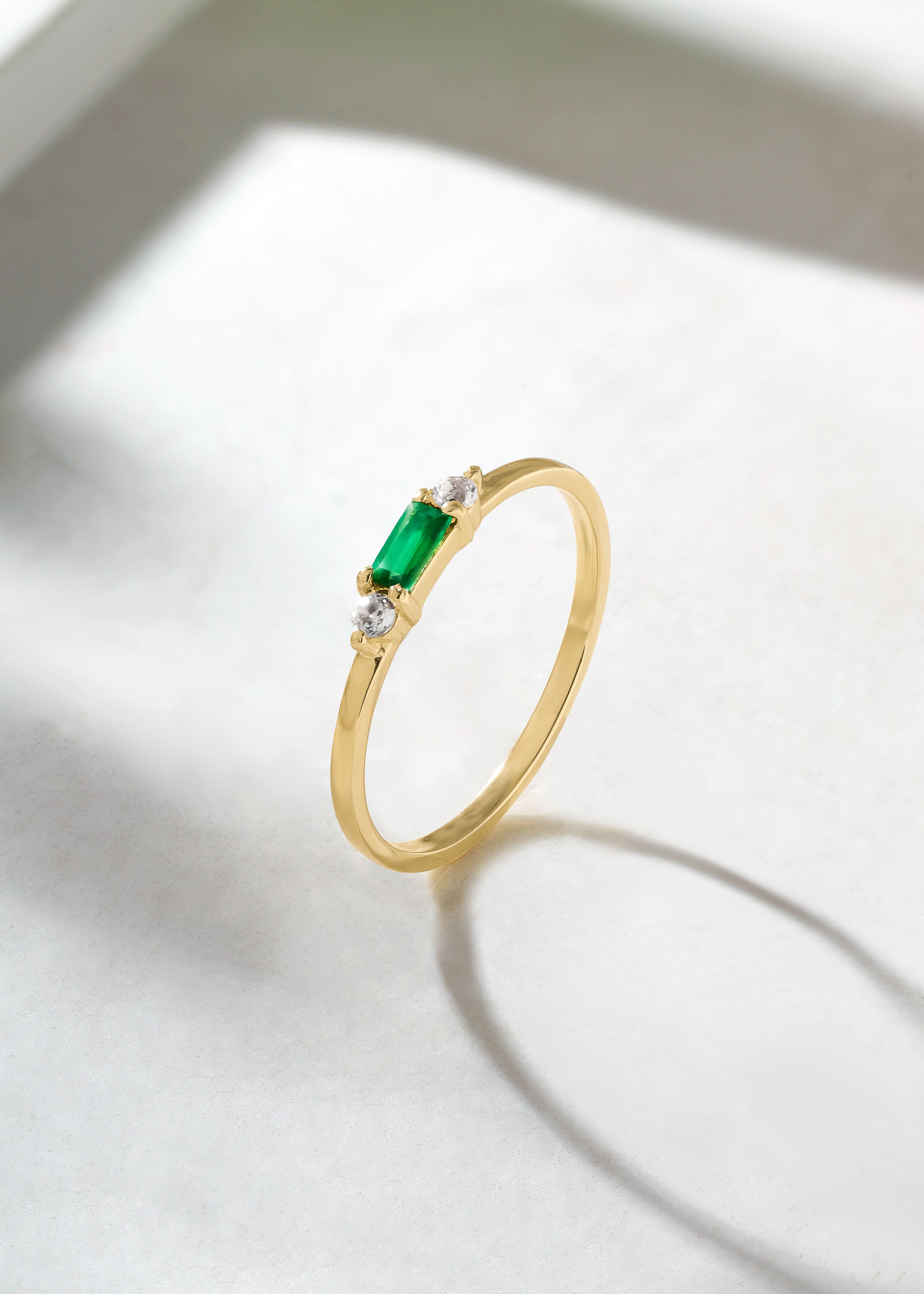 These rings will instantly elevate your style! They feature a vibrant lab-created emerald complemented by sparkling white topaz. This dainty piece beautifully catches the light with every movement, adding a touch of luxury to both everyday outfits and special occasions. This ring is designed for effortless all-day comfort.