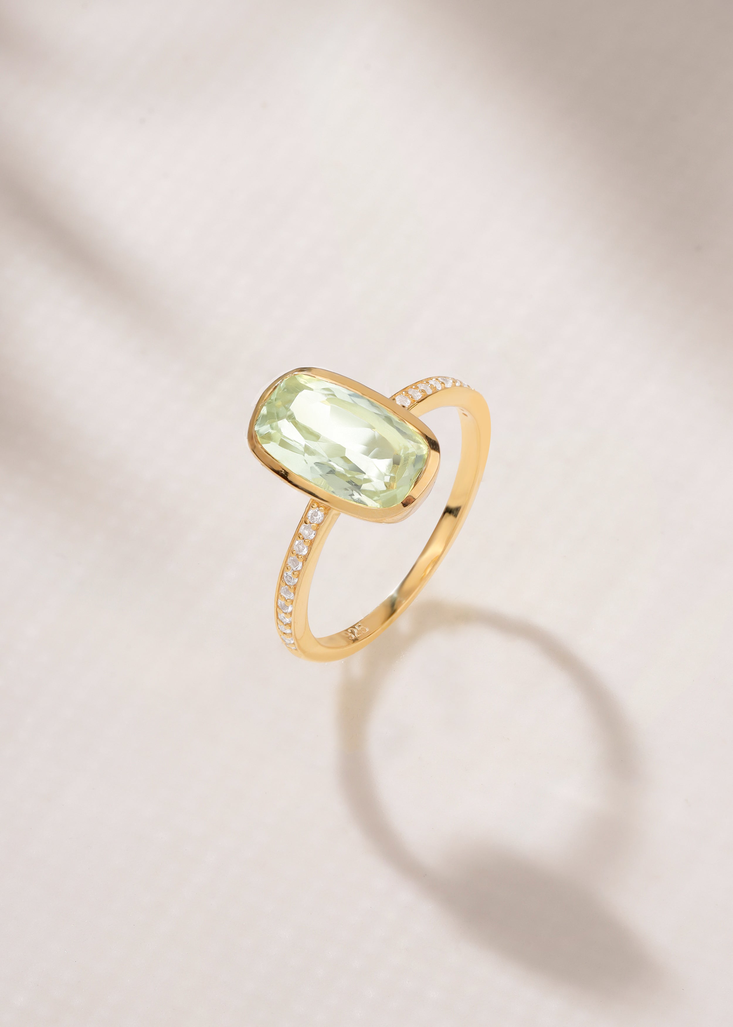 14K Gold Plated over 925 Sterling Silver Green Amethyst White Topaz Promise Rings
