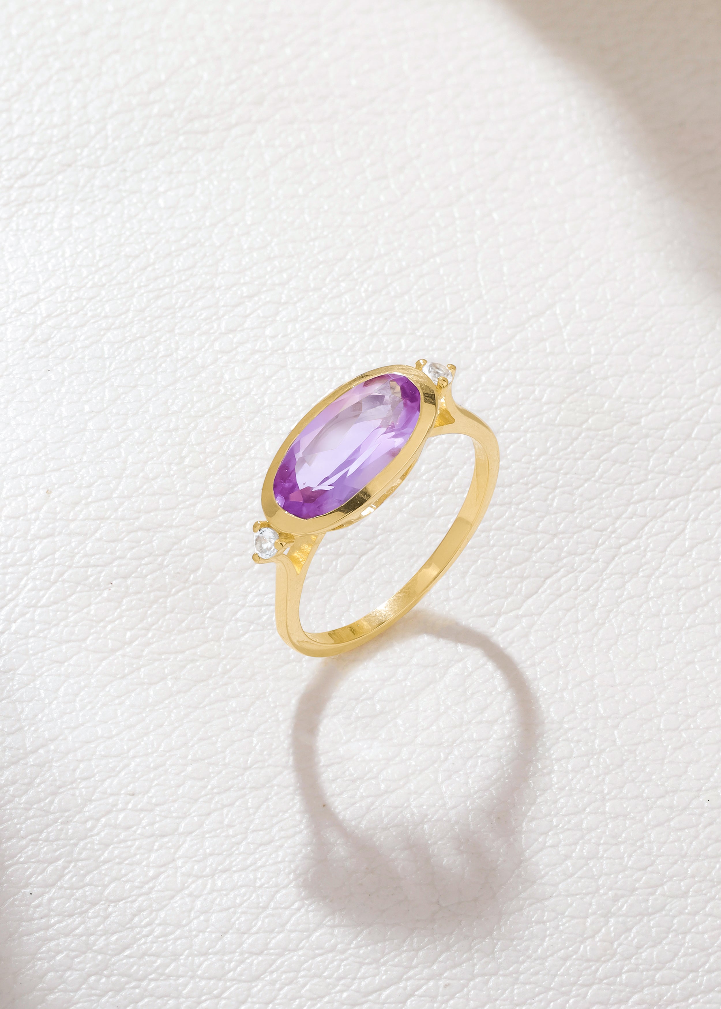 Celebrate soft romance and timeless beauty with this 14K Gold Plated Pink Amethyst & White Topaz Promise Ring. Crafted in luxurious 925 sterling silver with a radiant 14K gold plating, this delicate piece showcases a luminous pink amethyst at the center, beautifully accented by sparkling white topaz that enhances its gentle glow.