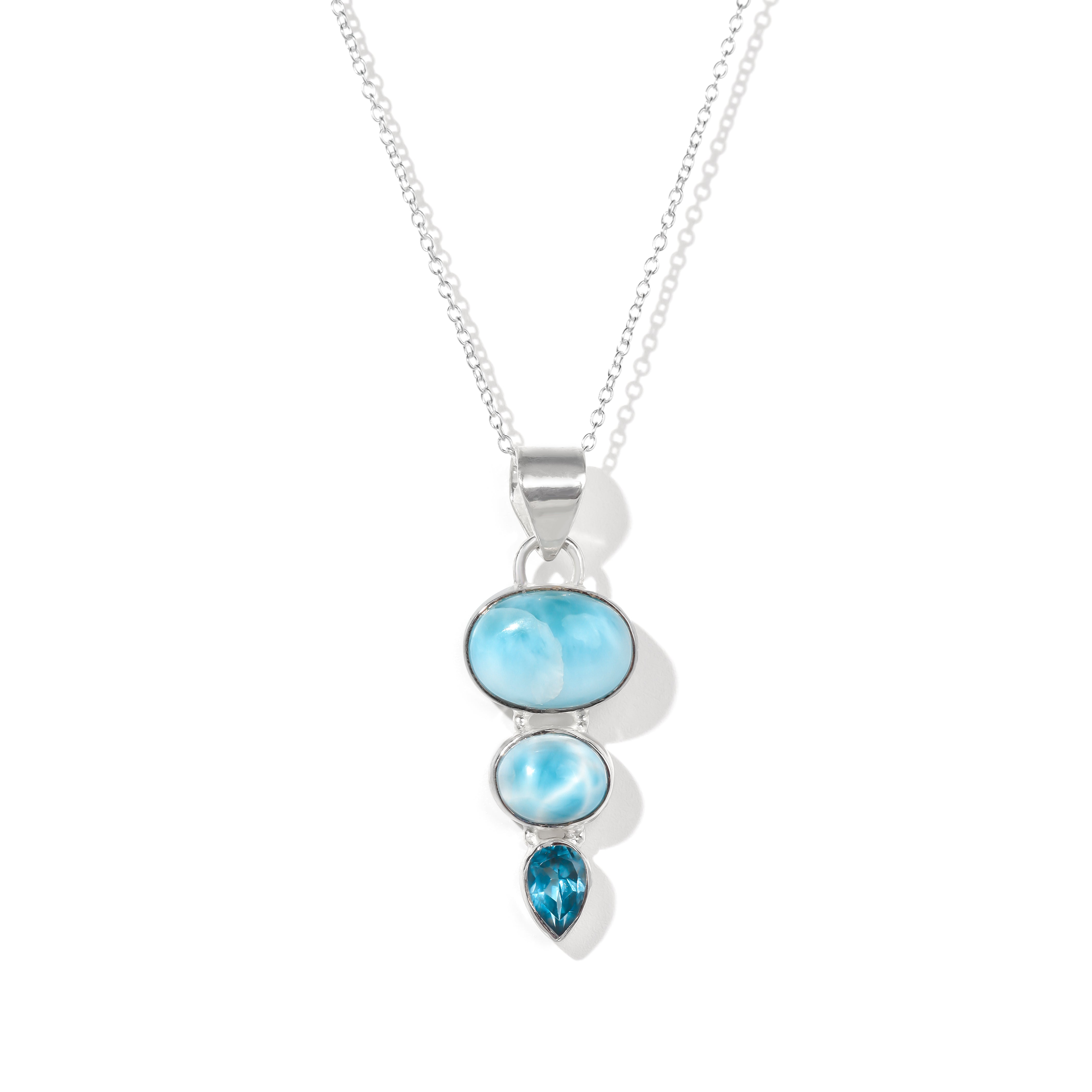 Larimar Blue Topaz Solid 925 Sterling Silver Chain Pendant Jewelry