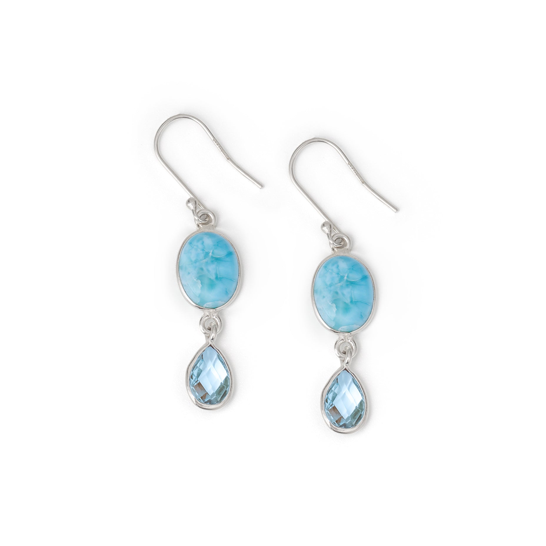 Larimar Blue Topaz Solid 925 Sterling Silver Dangle Earrings Jewelry
