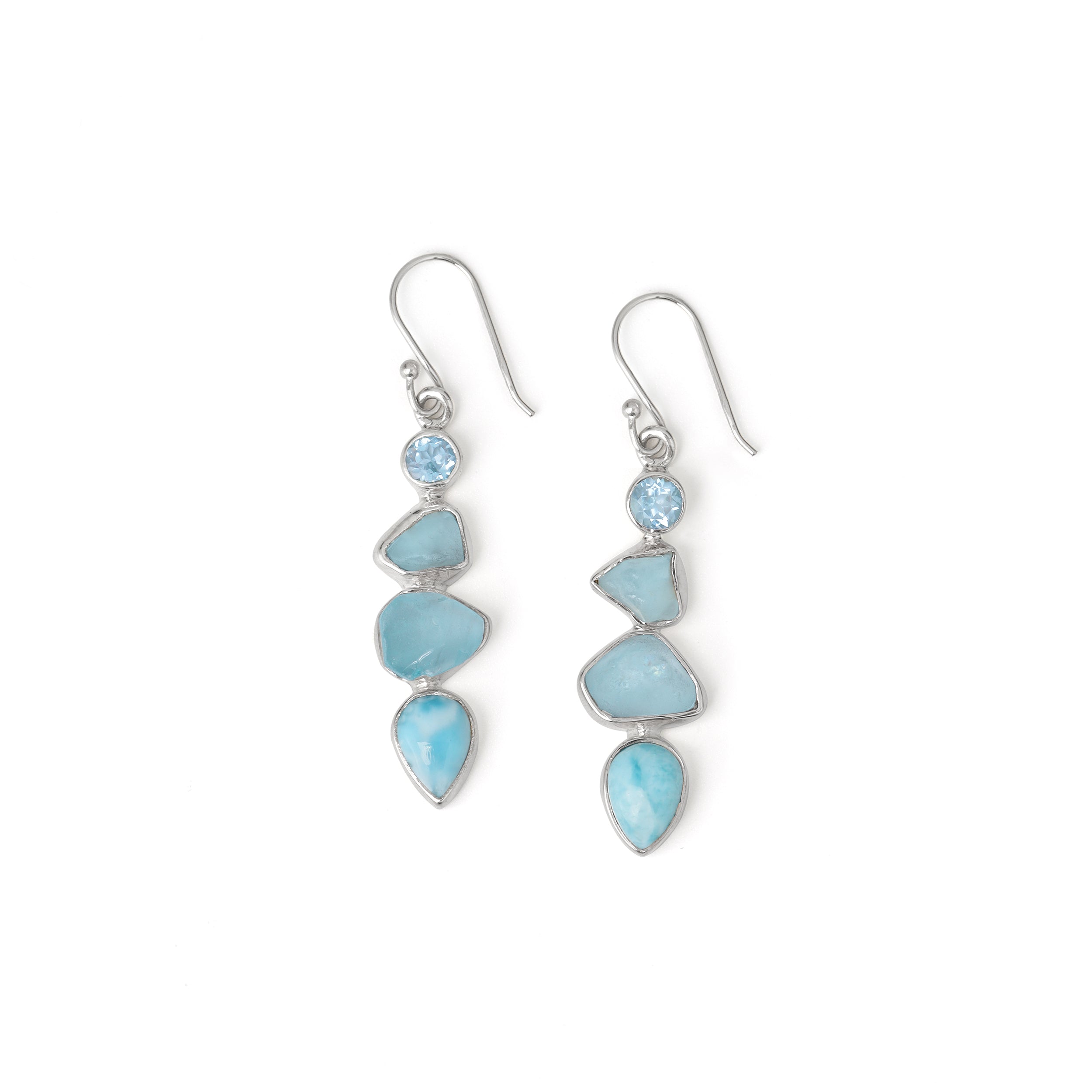 Larimar Rough Blue Topaz Solid 925 Sterling Silver Dangle Earrings Jewelry