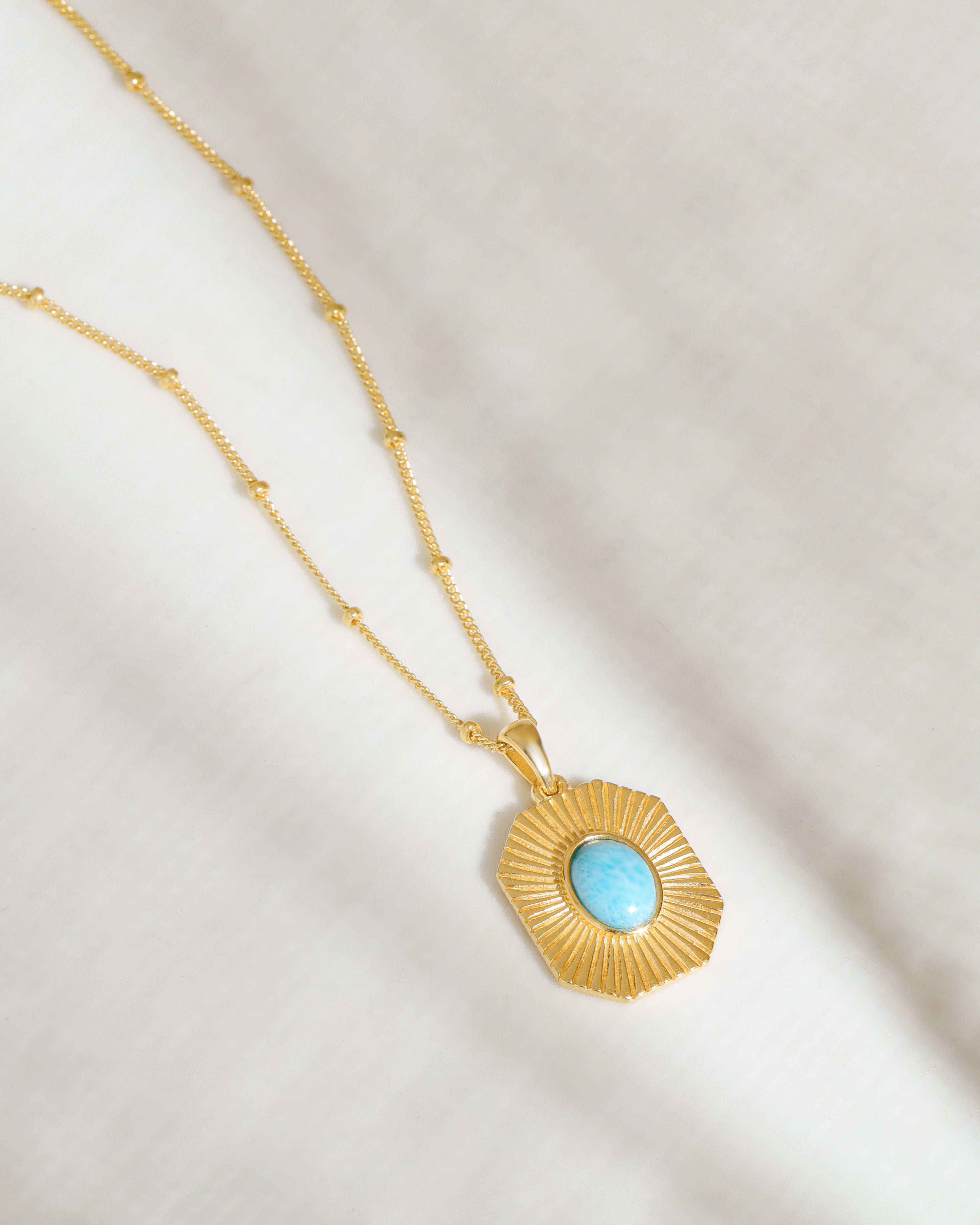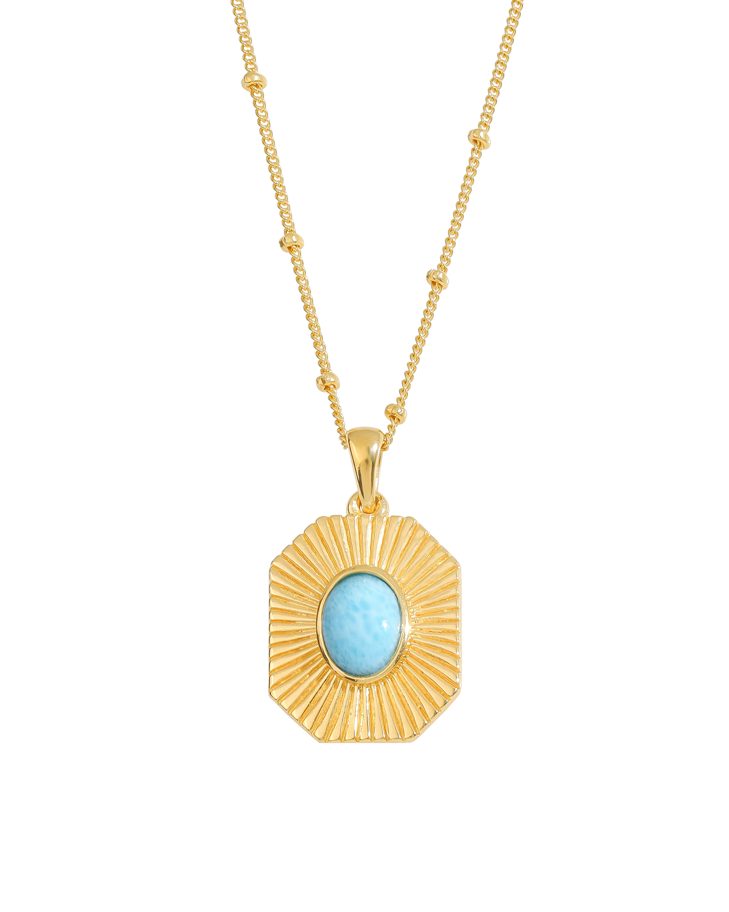 Larimar Signet Necklace Solid 14K Gold Plated Over 925 Sterling Silver Chain Pendant Jewelry