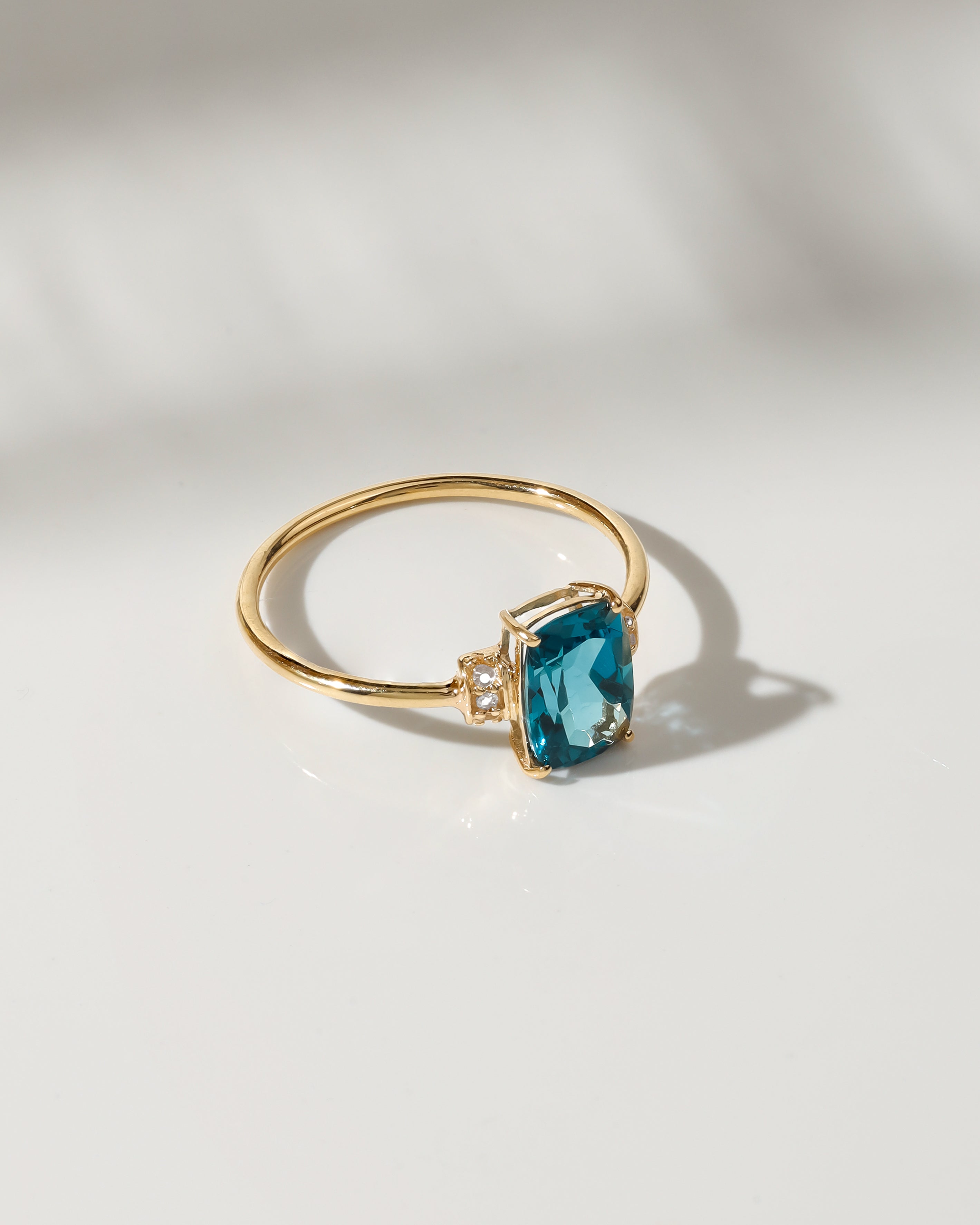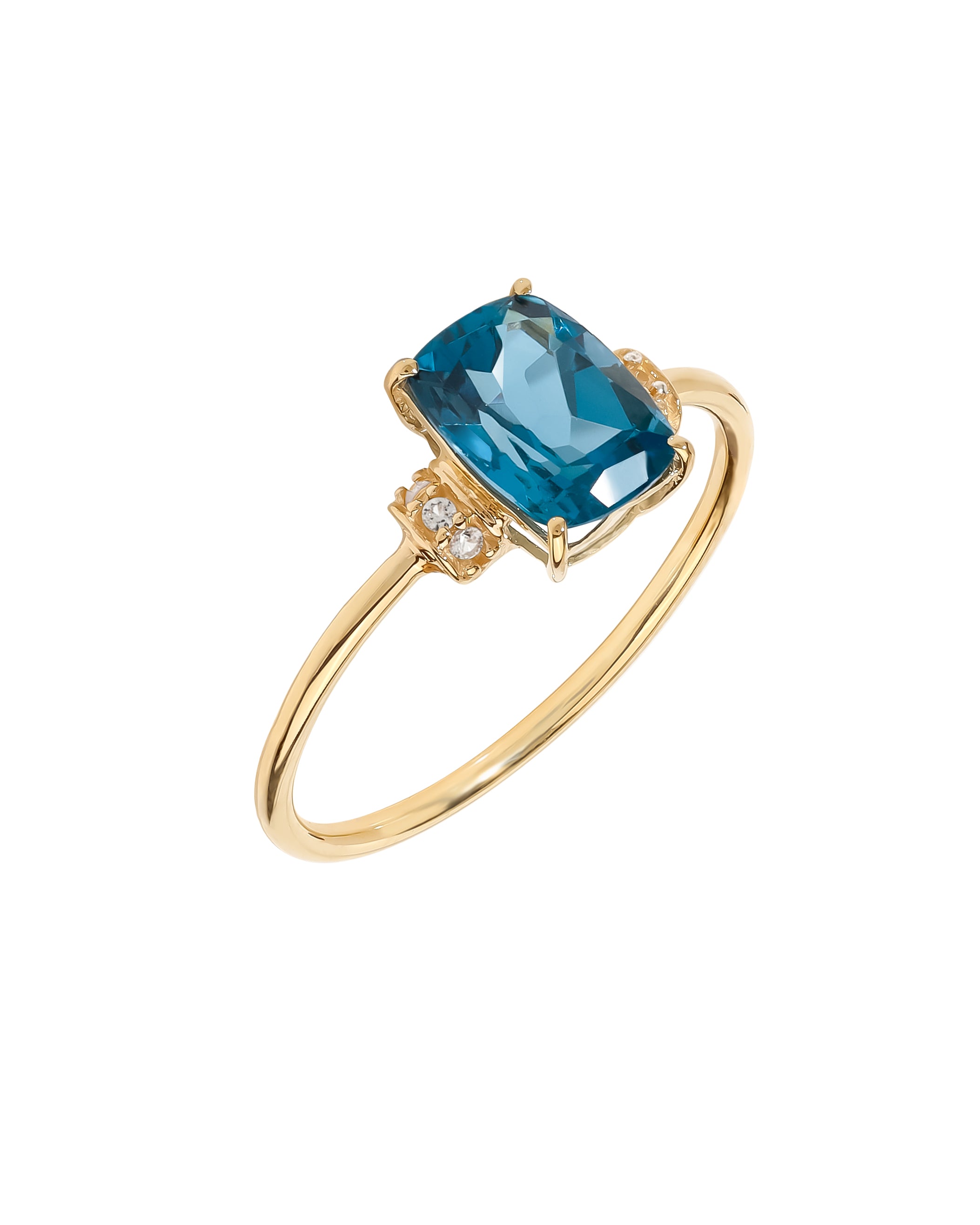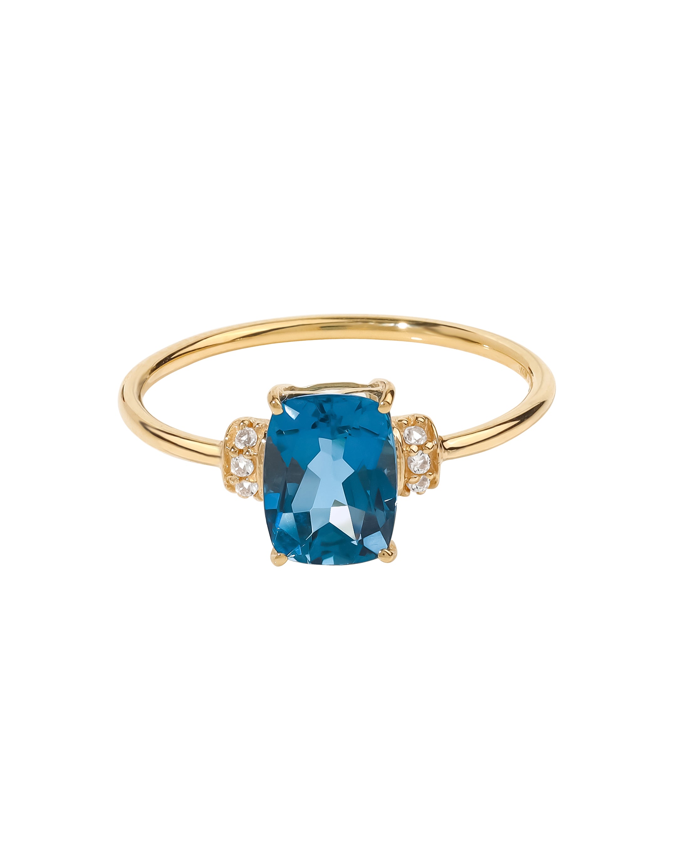 London Blue Topaz & White Topaz Promise Ring Solid 14K Yellow Gold Jewelry Gift for Women