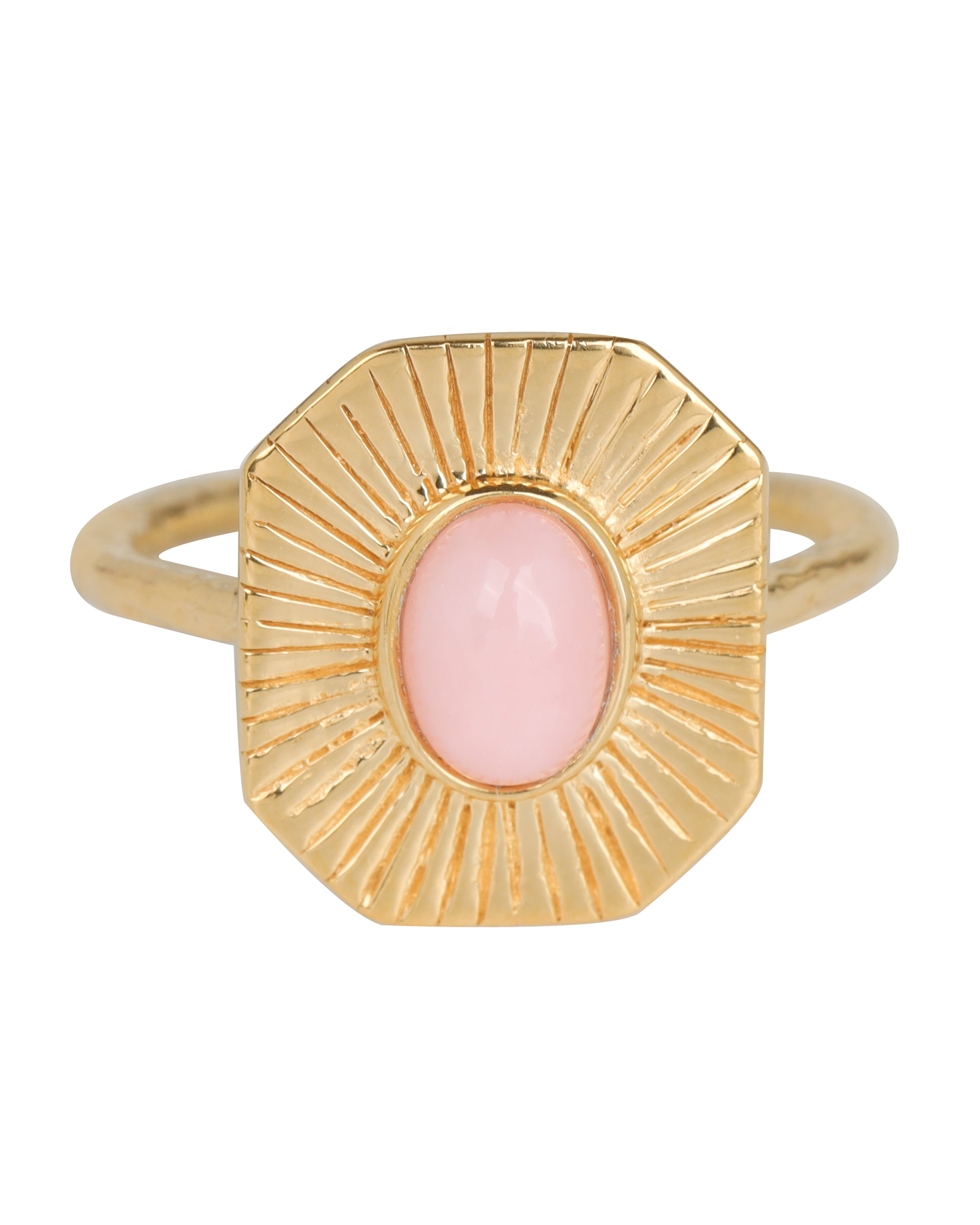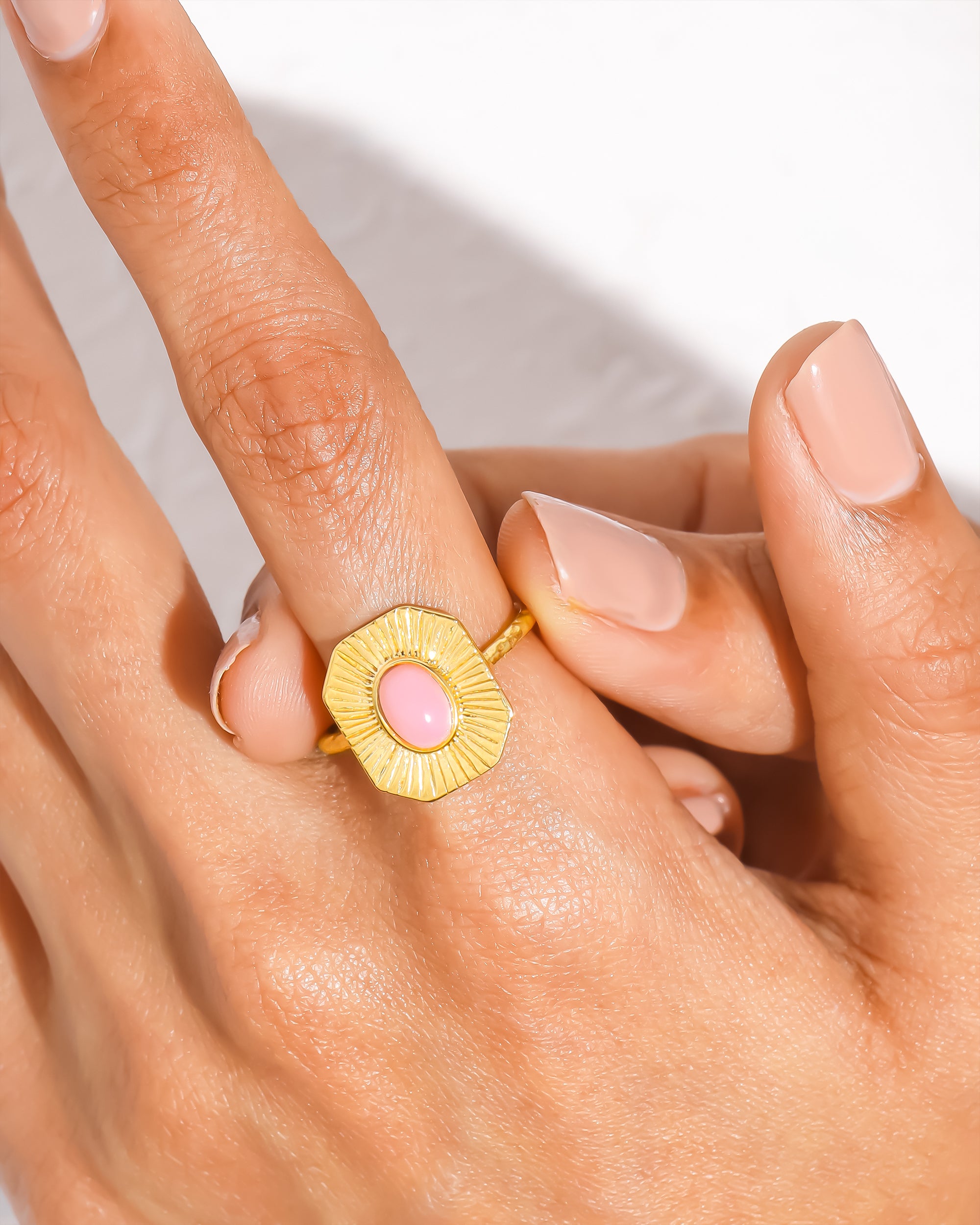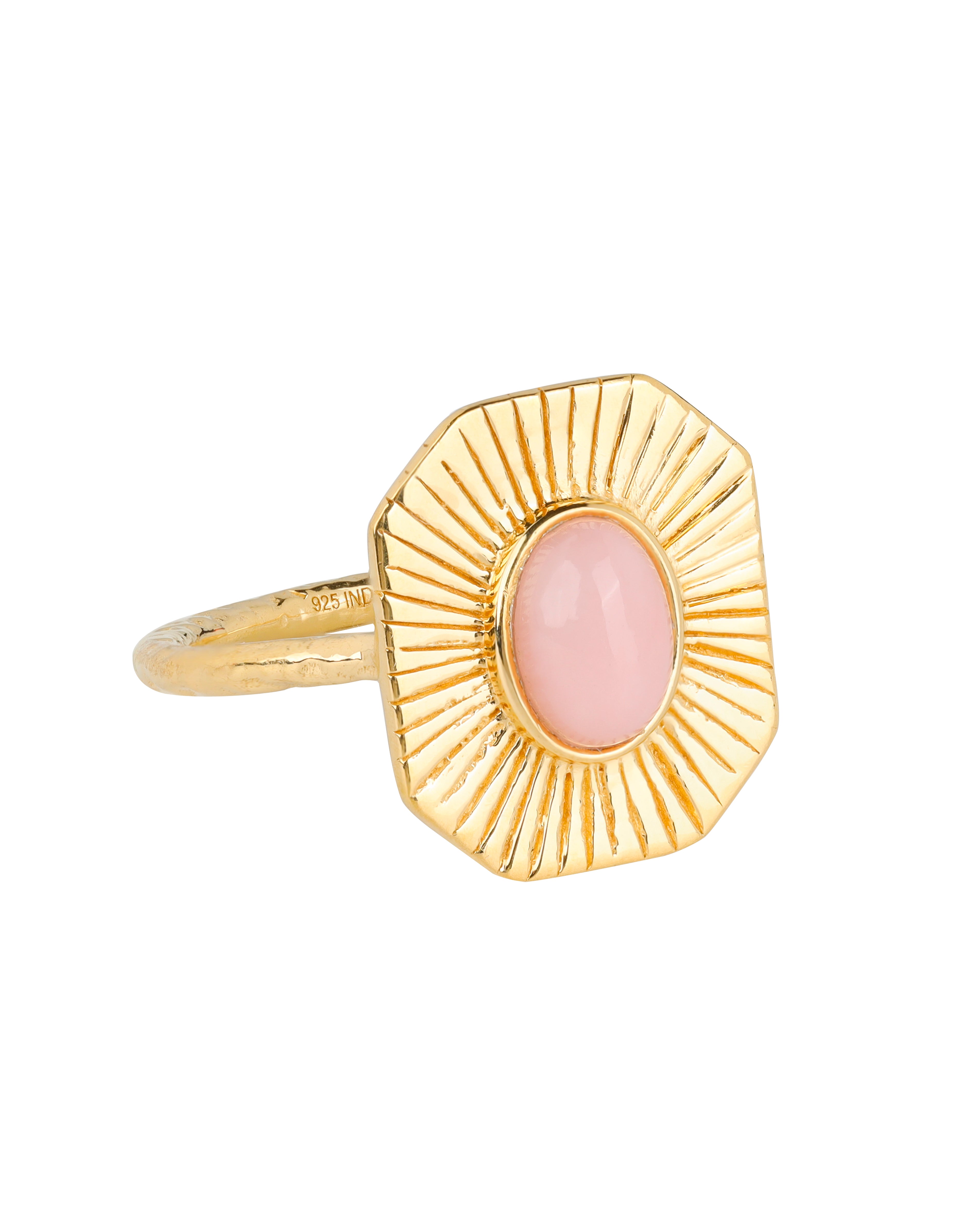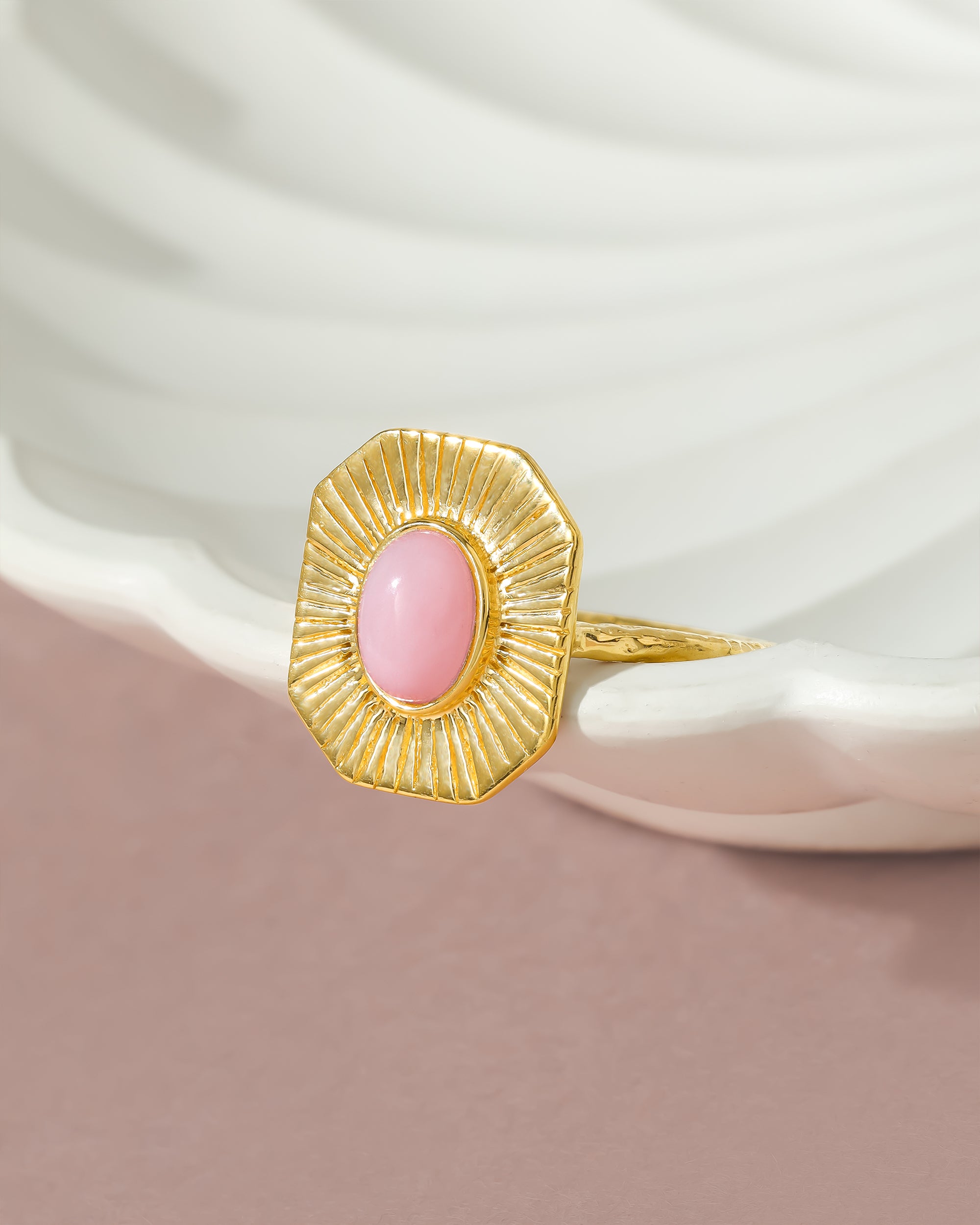Natural Pink Opal Signet Ring Solid 14K Gold Over 925 Sterling Silver Jewelry