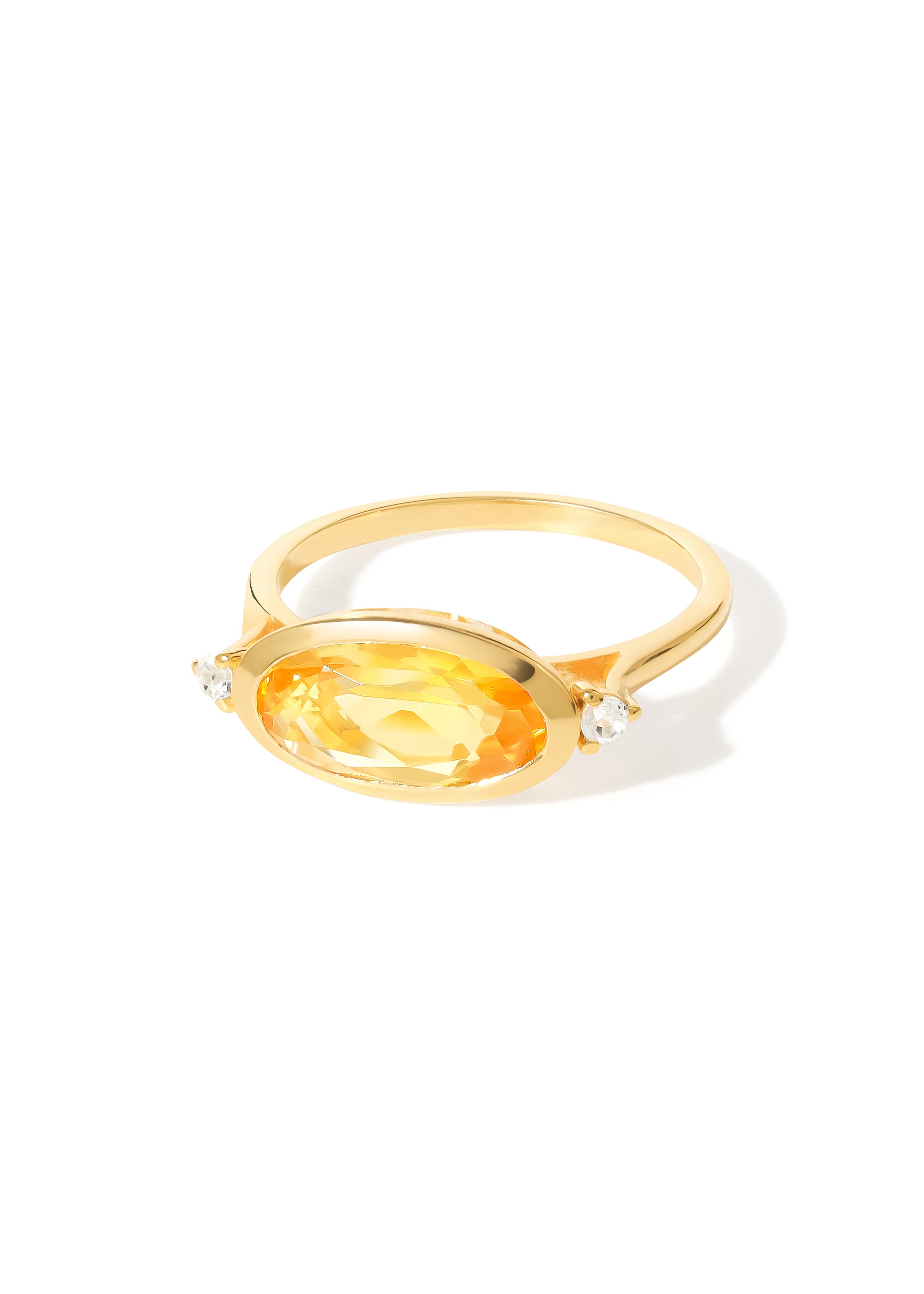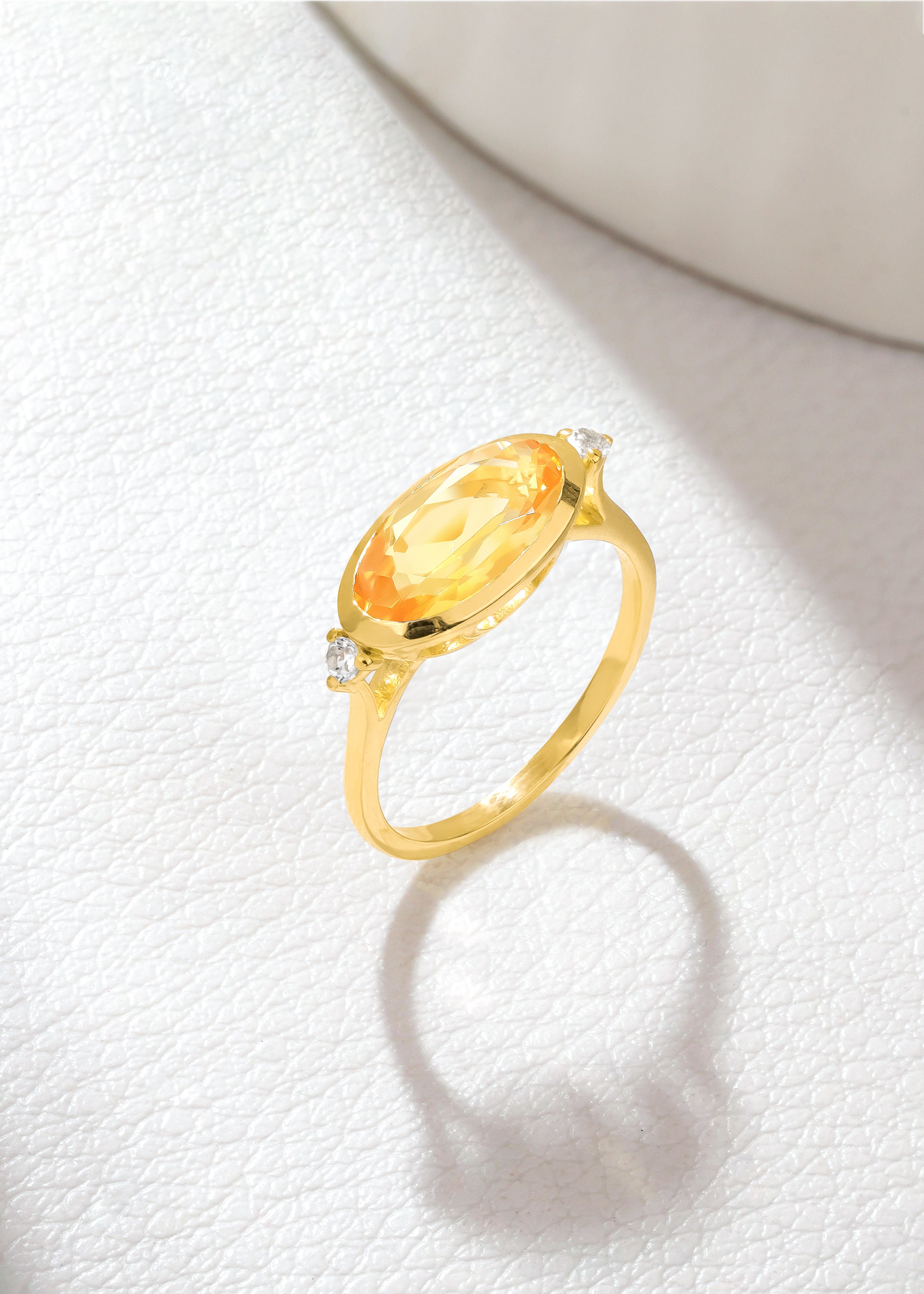 Radiate warmth and timeless charm with this 14K Gold Plated Citrine & White Topaz Promise Ring. Expertly crafted in 925 sterling silver with a luminous 14K gold plating, this elegant piece features a vibrant citrine gemstone that glows with golden-yellow brilliance. Sparkling white topaz accents enhance the center stone, adding a refined shimmer that catches the light beautifully.