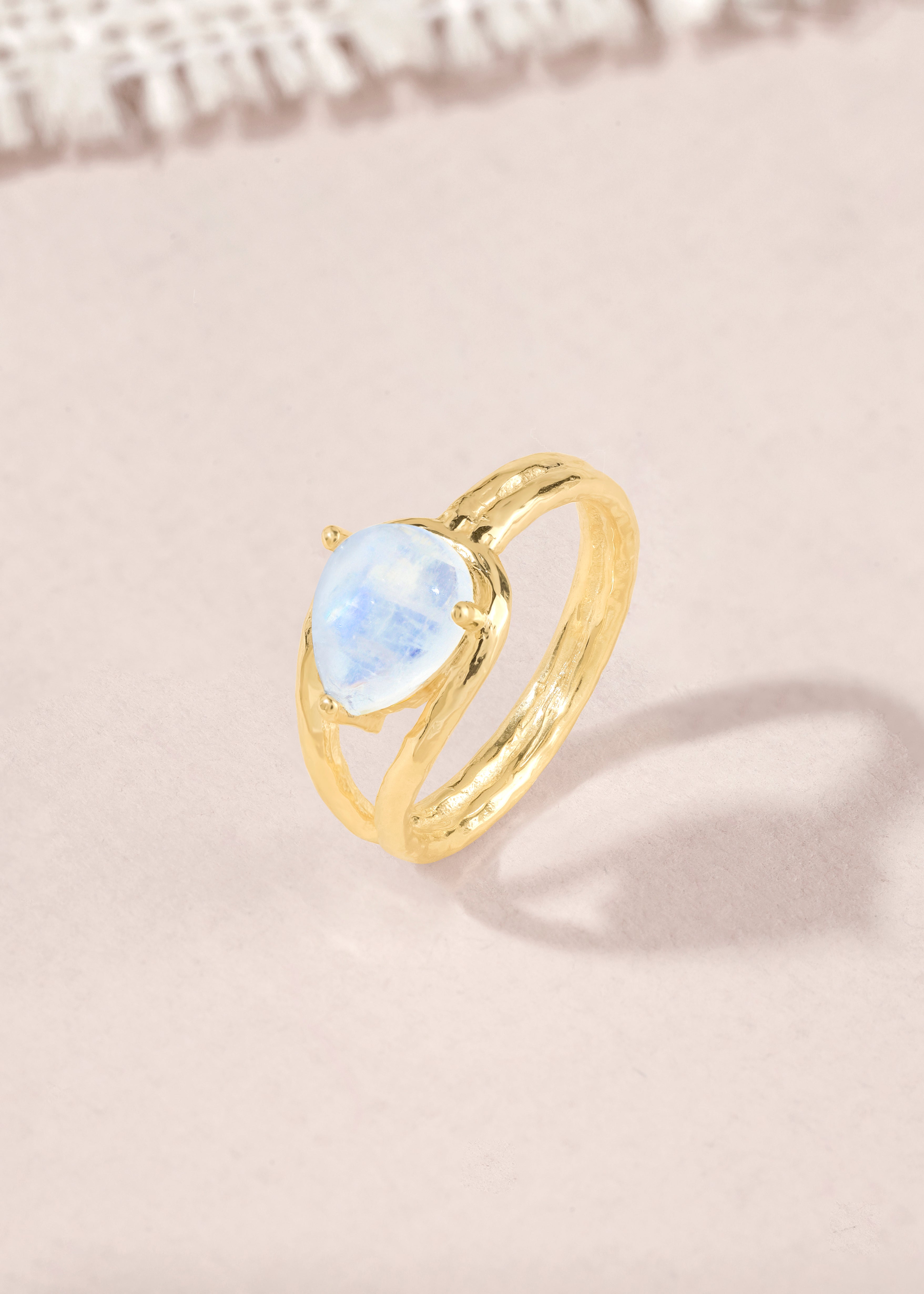 Gracefully modern with a touch of celestial charm, the Celestial Embrace Split Band Ring highlights a glowing Rainbow Moonstone cradled in a sleek split band design. Crafted in 925 sterling silver and finished with luxurious 14K gold plating, the fluid curves symbolize balance and connection. The moonstone’s soft blue flash reflects intuition and inner calm, making this ring a refined statement for everyday wear or meaningful occasions.