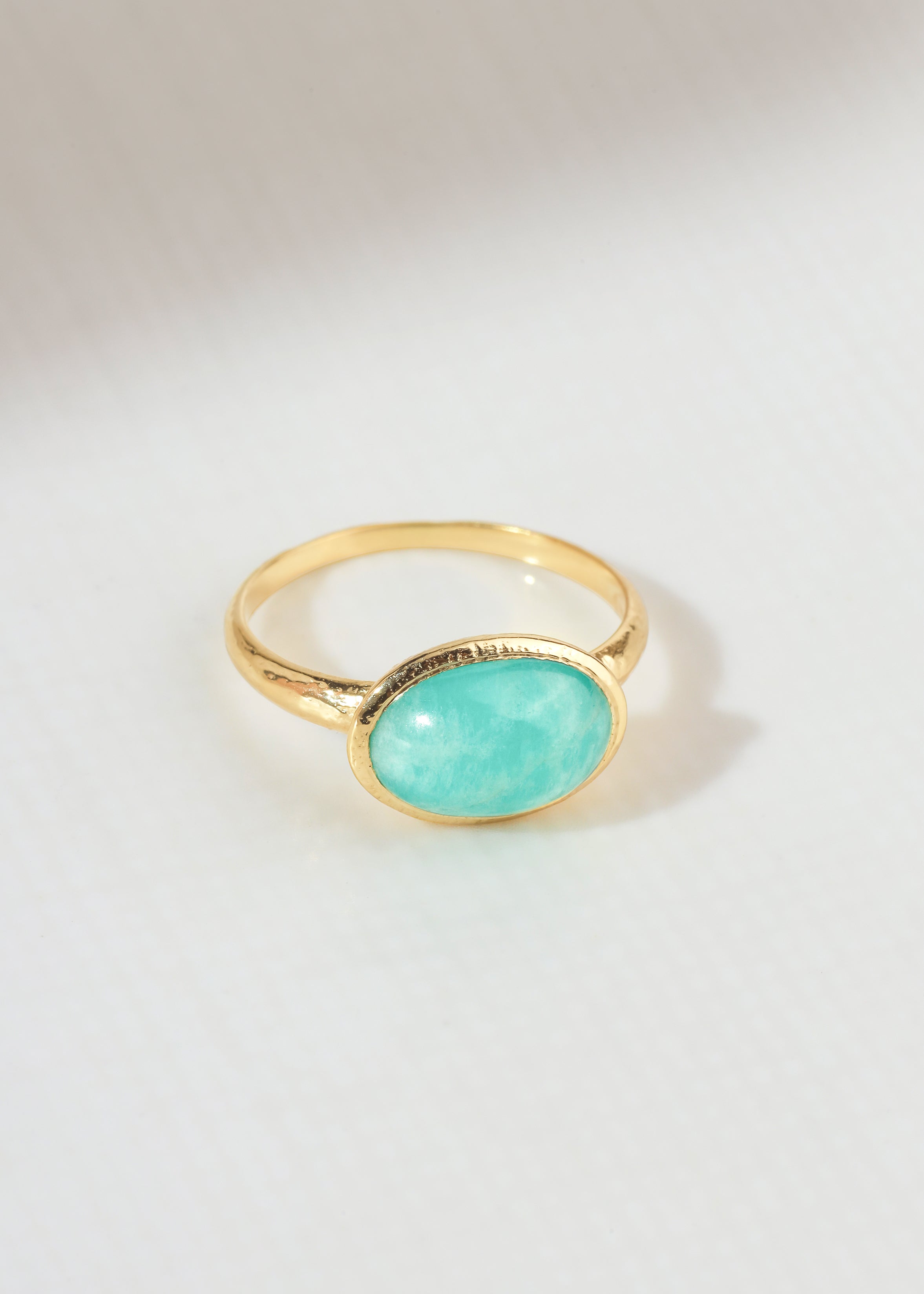 14K Gold Plated 925 Sterling Silver Amazonite Textured Ring
