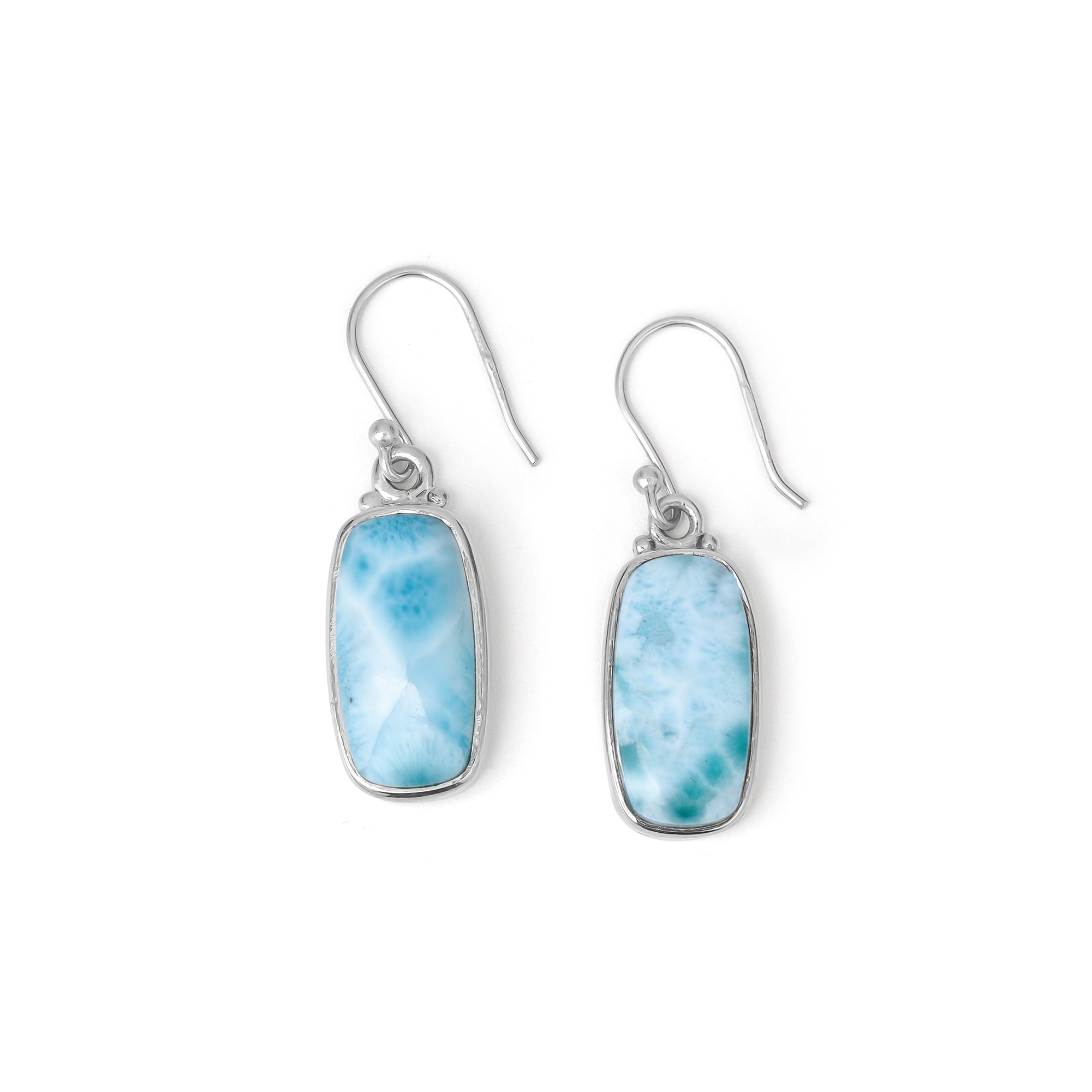 Natural Larimar Solid 925 Sterling Silver Dangle Earrings 1.50"